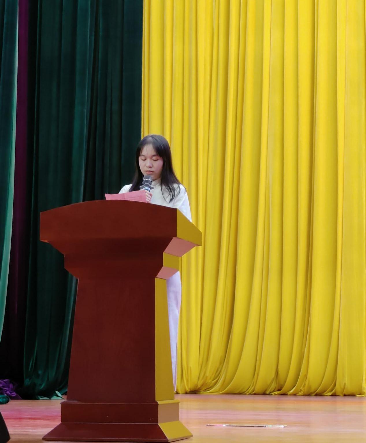自强之星、职业技能之星和第二课堂之星三个奖项的获得者,2021级工商企业管理3班学生梁玉树作为获奖代表发言。她代表全体获奖同学向学校表达了感恩之情,展现了争做时代好青年的决心与信心。