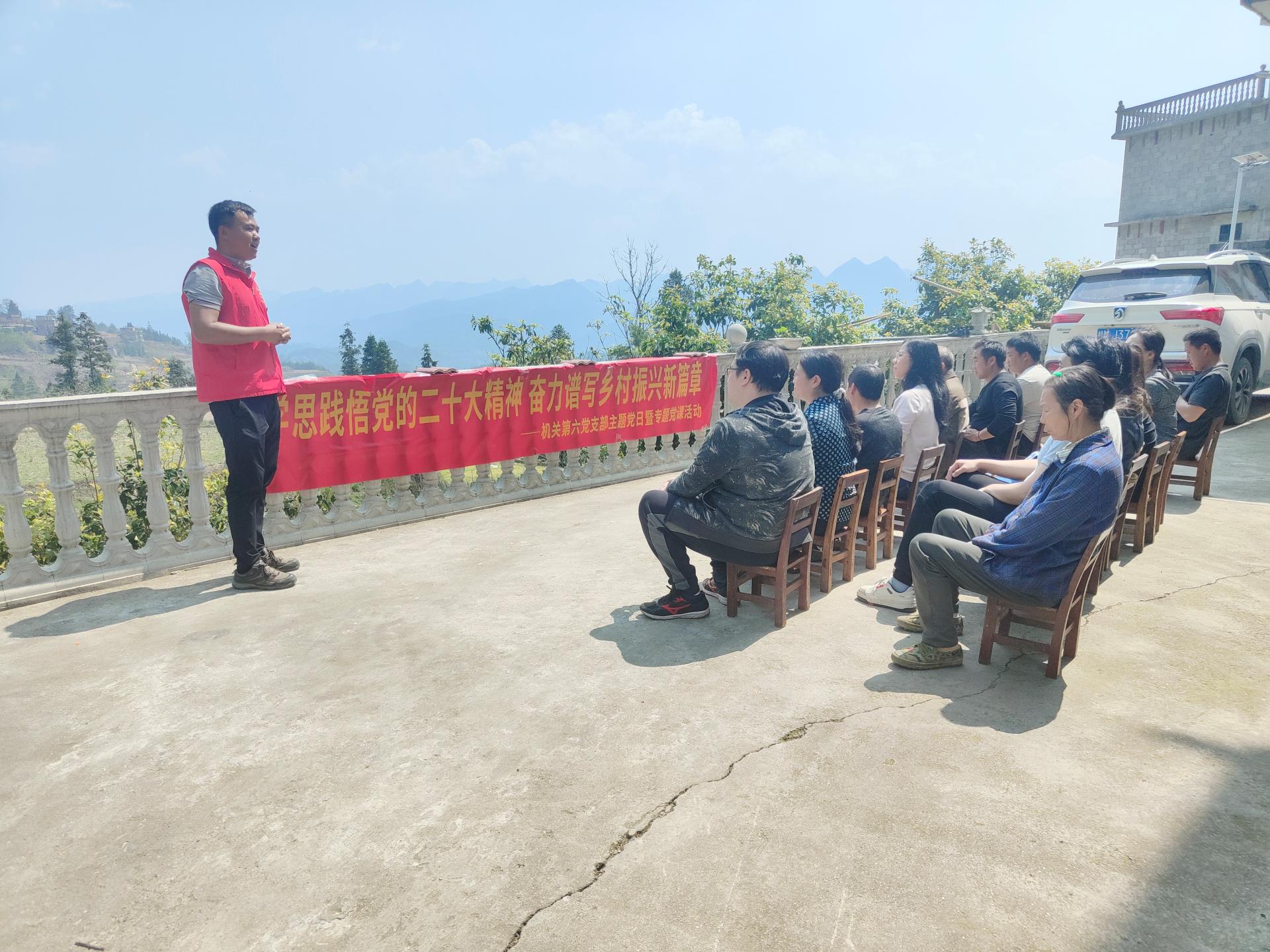 在甲木村,陆纯梅代表教务科研处向甲木村村委捐赠了货架,助力甲木村积分制超市建设。之后,李启程结合自己第一书记的经历,给大家上了一堂意义深刻的现场党课,讲述了他从高校教师到贫困村党组织第一书记的角色转变、赴任后乡村振兴工作开展情况、甲木村产业和人才需求现状以及如何通过发挥党员先锋模范作用带动村民增收致富的做法和体会。李启程强调,走好乡村振兴之路,前提是要深入学习贯彻党的二十大精神,积极接受党性教育,坚持以底线思维抓防范和化解。