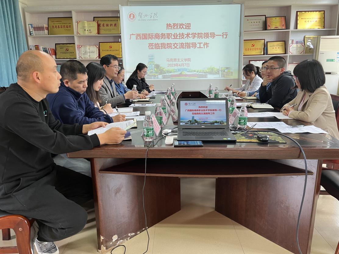 为了全面贯彻落实党的二十大精神,学习借鉴兄弟院校在思政课程课程建设、思政课实践教学、思政课教学比赛以及党建品牌打造等方面的经验做法,推动我校高质量发展,4月6至9日,我校马克思主义学院(以下简称“马院”)党总支书记、院长梁芷铭带领思政课骨干教师一行5人前往梧州和贺州开展为期四天的“学习党的二十大 调研促提升”主题活动,与梧州学院马院和贺州学院马院进行交流。