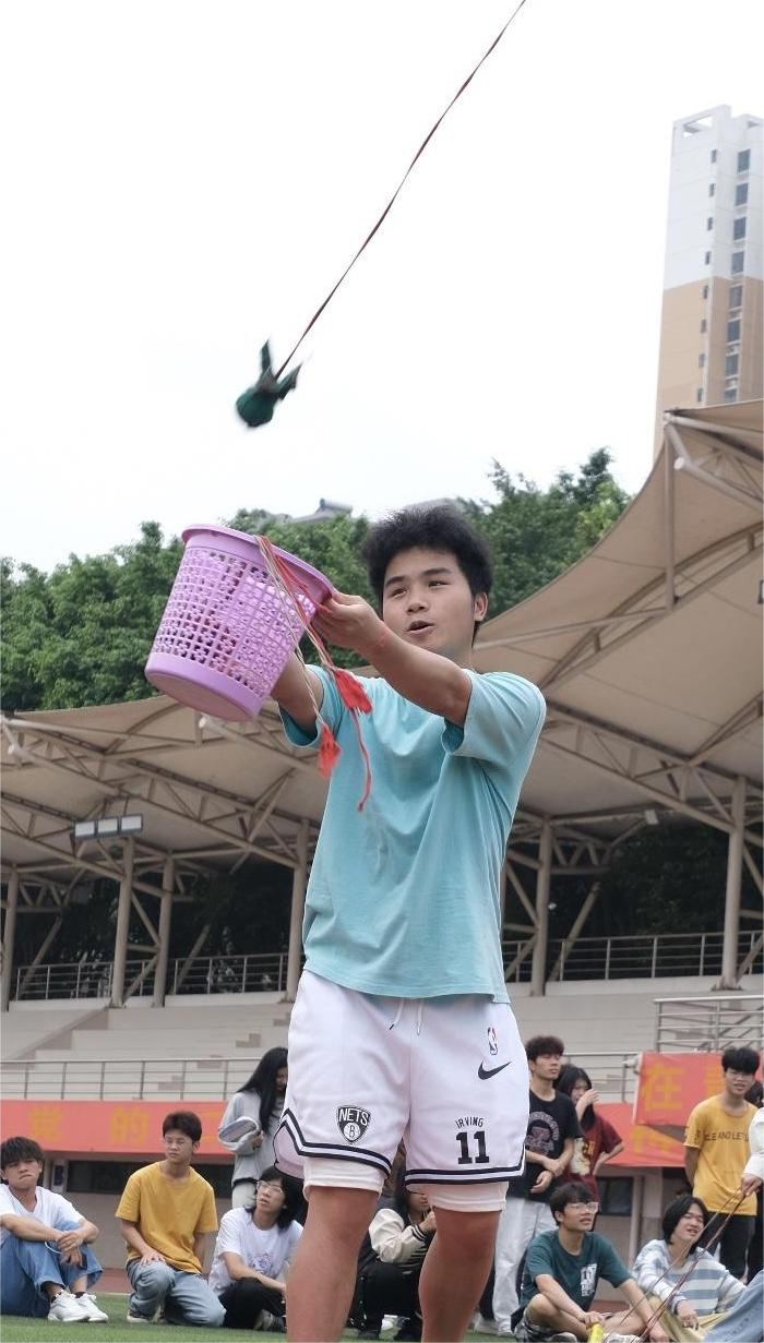 4月18日中午,在大学路校区田径场举行本次民族体育竞技比赛的第二个项目——抛绣球。抛绣球是“壮族三月三”的一项传统活动,同学们一抛一接,配合默契,每一次进球,都赢得了阵阵喝彩。最终,21动漫9班二队获得一等奖;22动漫8班二队、22产品5班一队获得二等奖;22动漫9班、22动漫2班、22动漫8班三队、22动漫3班、22产品2班、21动漫8班和22动漫7班获得三等奖。