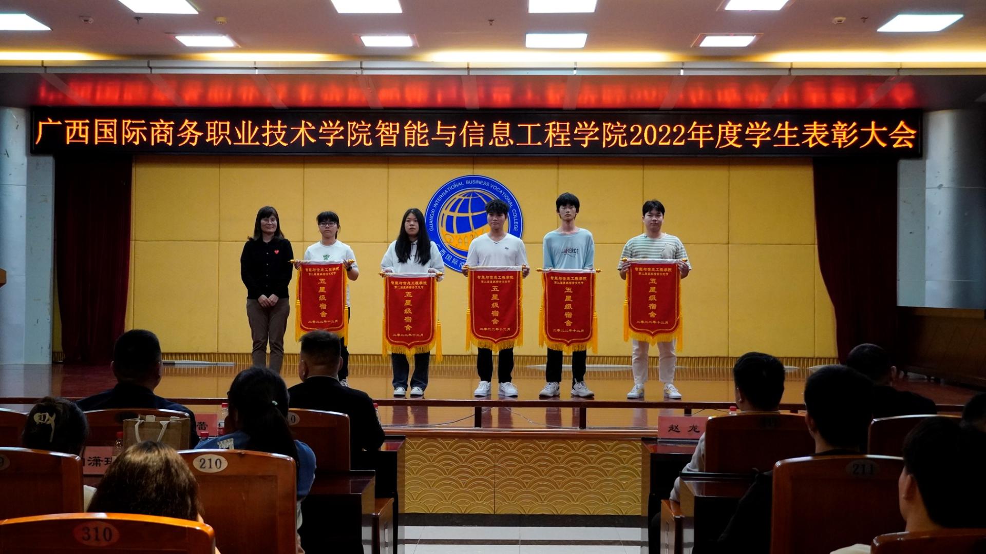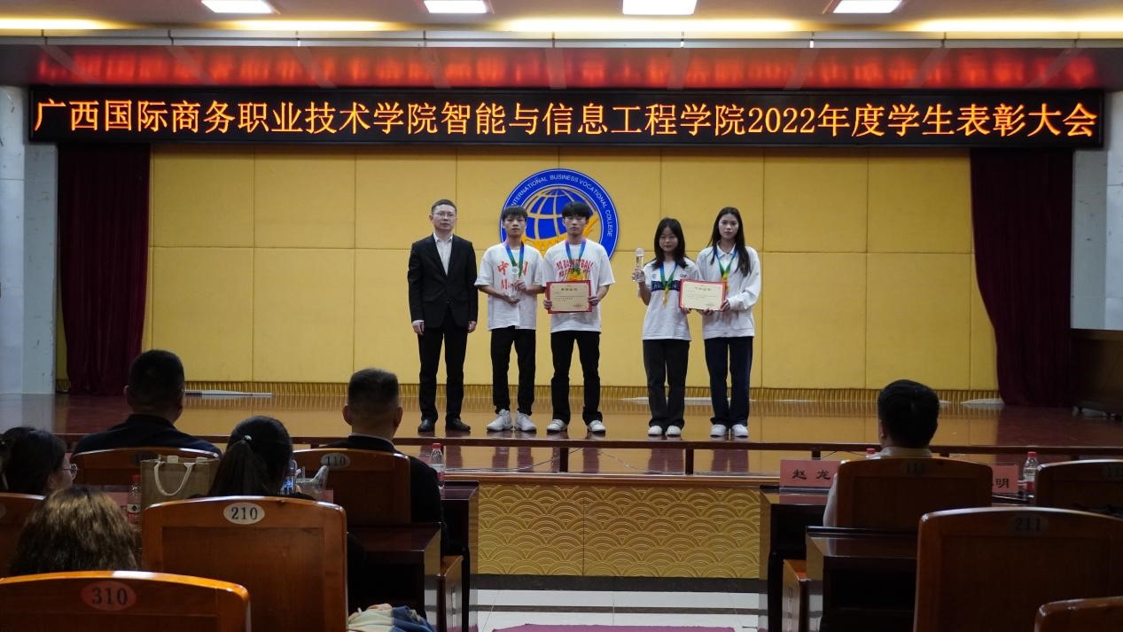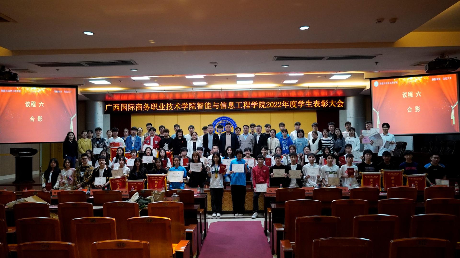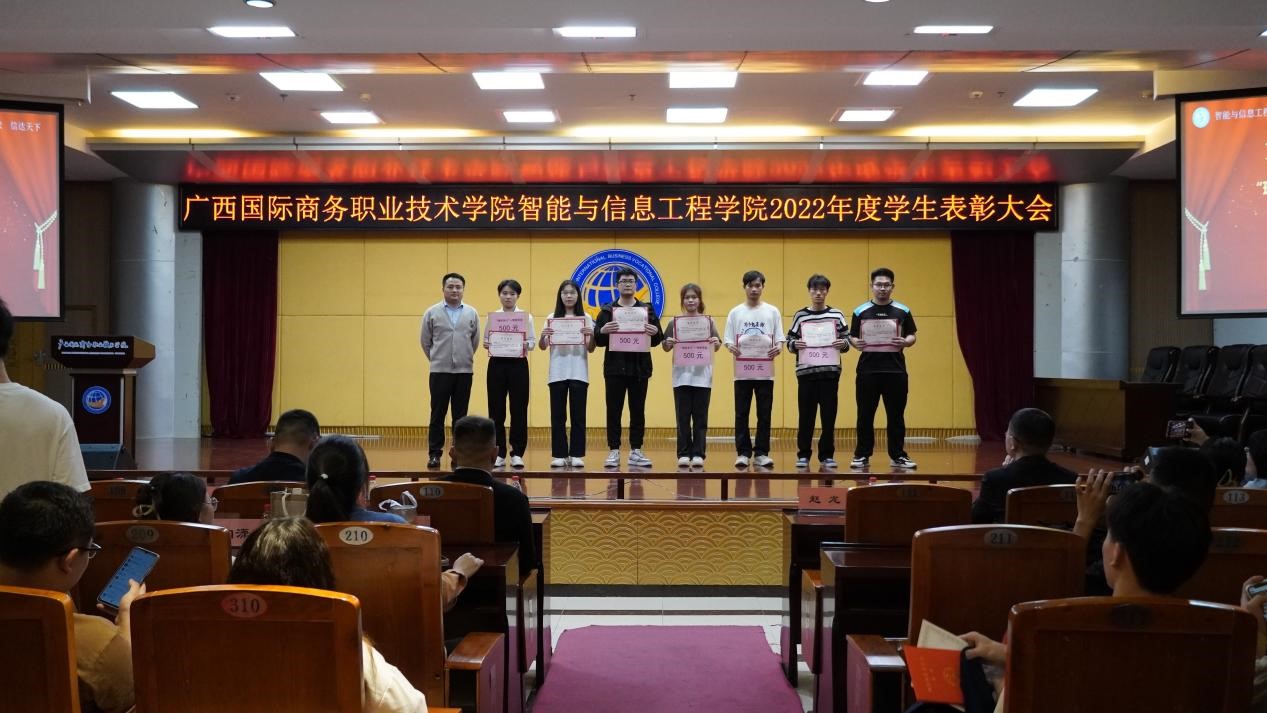 为弘扬奋斗精神,树立良好榜样,营造良好和谐的校园氛围,4月25日晚,我校智能与信息工程学院在大学路校区图书馆11楼学术报告厅召开2022年度学生表彰大会。党总支副书记李冬、学院副院长郑蕾、党总支专职副书记潘慧妮、副院长周菊瑄、深圳市瑞视云智科技有限公司总经理赵龙、教学经理徐小明、学院专兼职辅导员及300余名学生参加了此次大会。