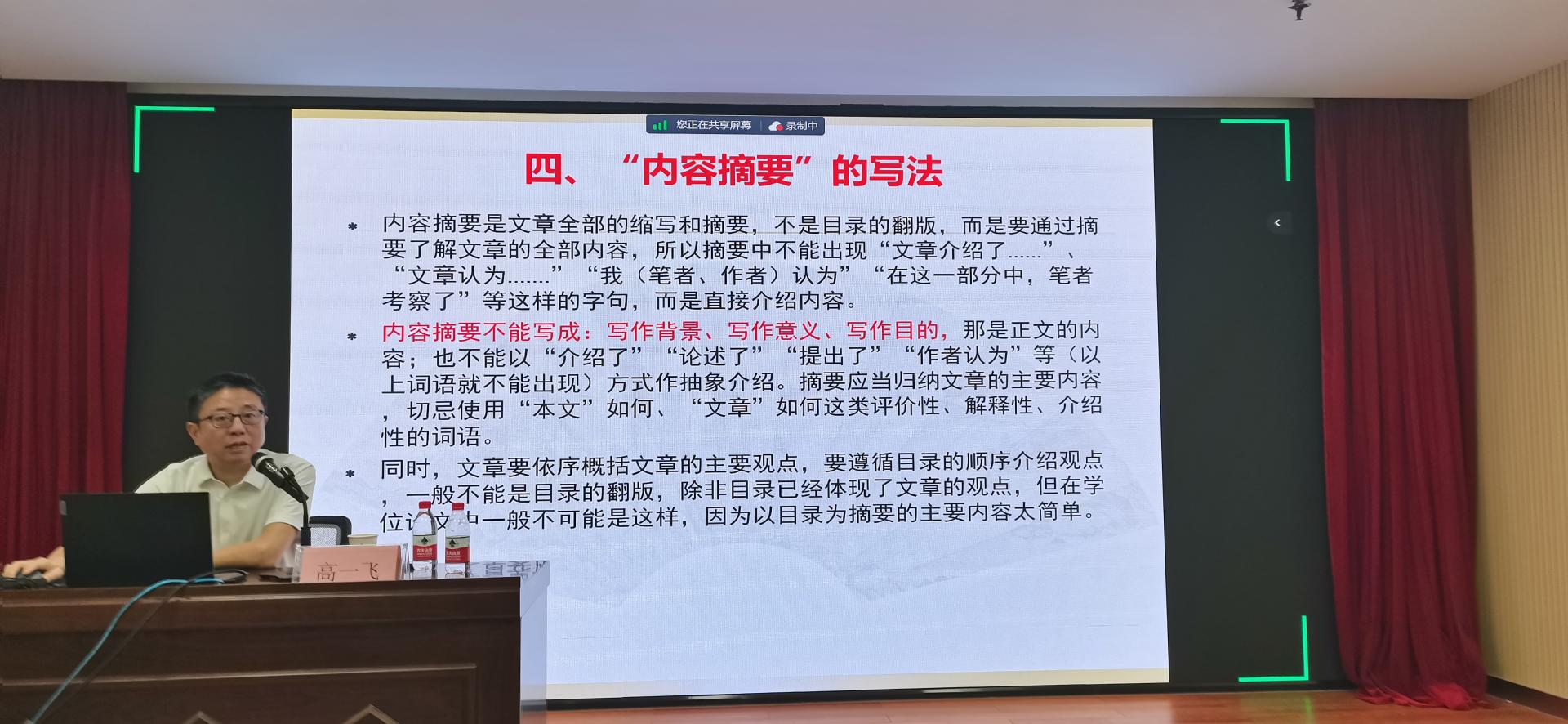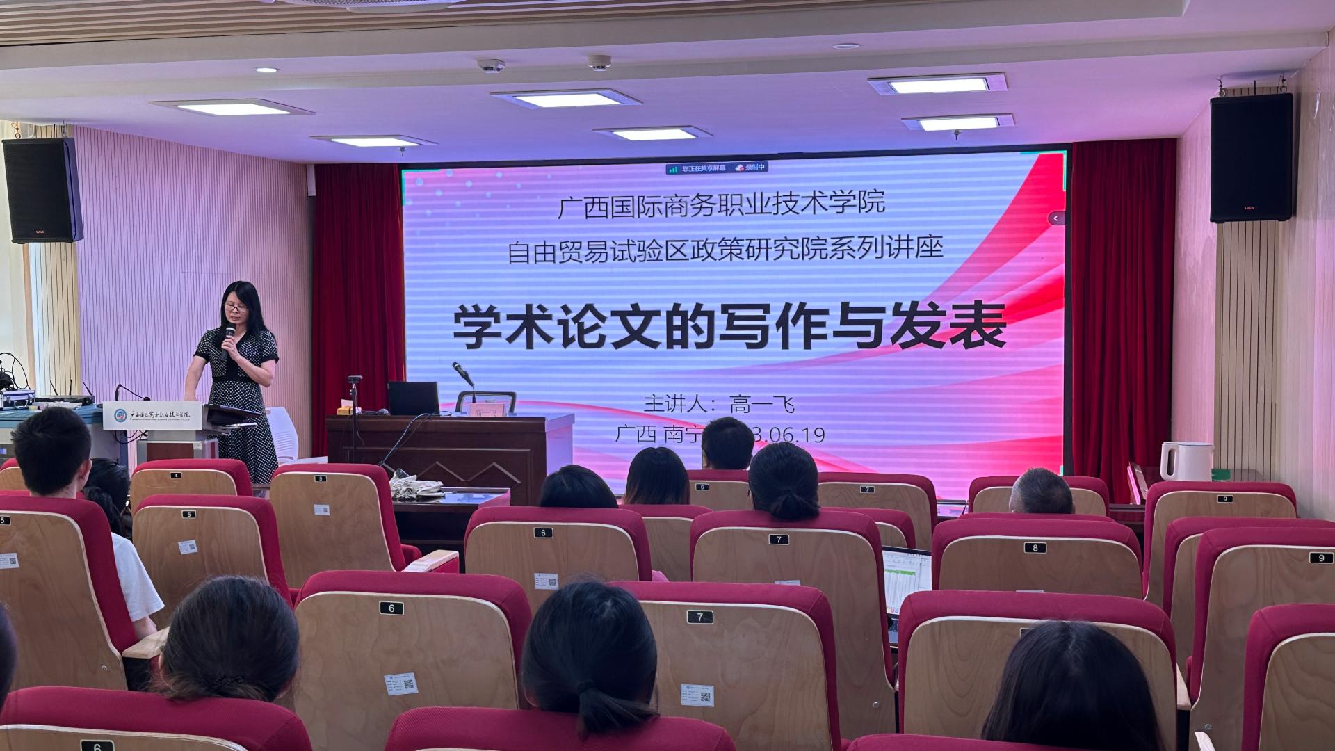 6月19日下午,由我校自由贸易试验区政策研究院举办的主题讲座“学术论文的写作与发表”在大学路校区图书馆8楼报告厅成功举办。讲座采用线上线下相结合的举办方式,学校师生代表共计一百余人参加。本次讲座由自由贸易试验区政策研究院院长杨素琳主持。本次讲座为学校科研人员展现了学术论文写作的相关要求和技巧,帮助大家提高论文写作水平和发表论文的成功率。