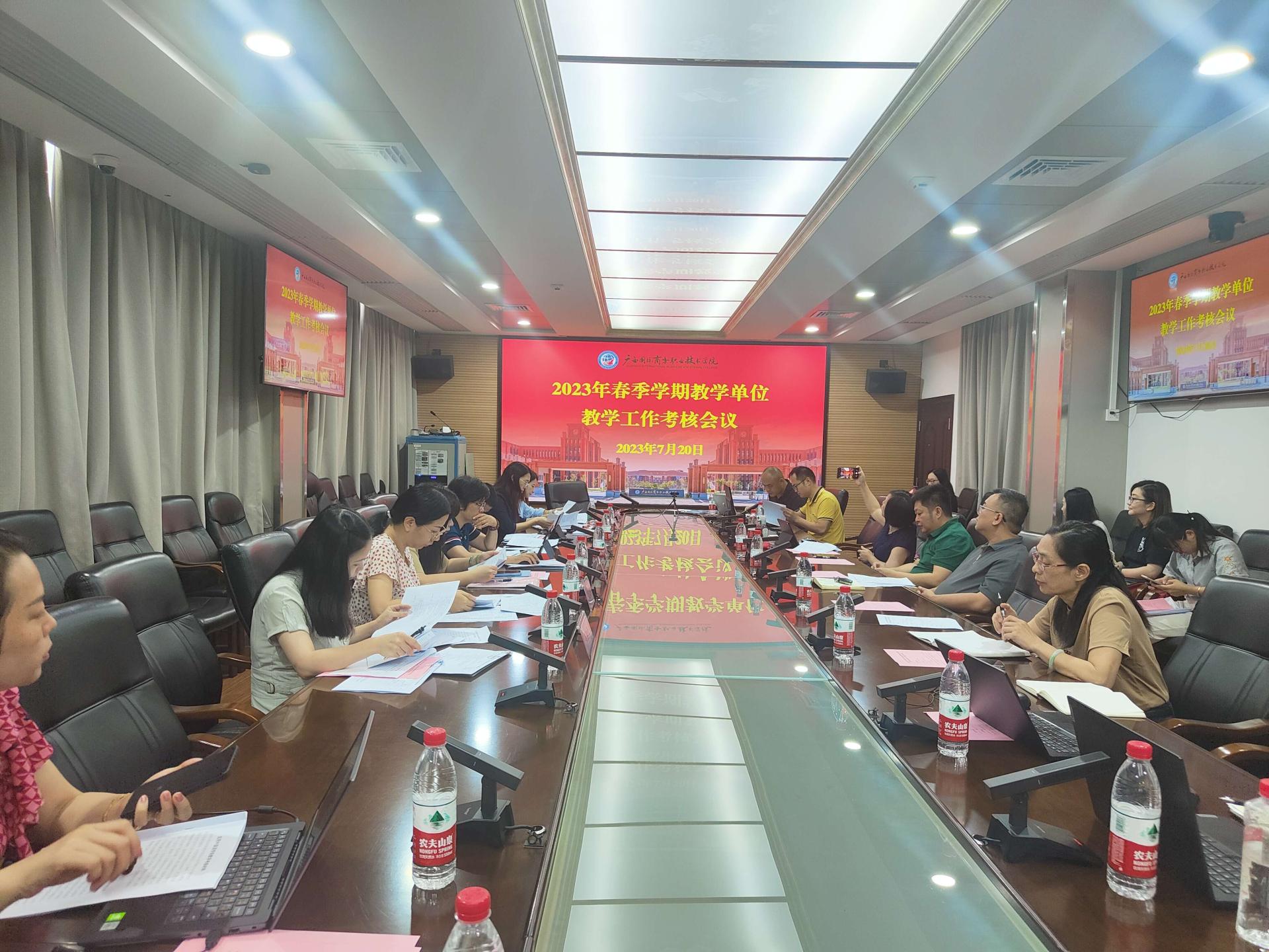 7月20日上午,我校在大学路校区2栋1楼会议室组织开展2023年春季学期教学单位教学工作考核,学校考核小组由人事处、教务科研处、学生工作处、招生就业处、发展规划与质量管理处相关人员组成,各参评教学单位负责人、分管教学副院长、教学秘书参加考核。