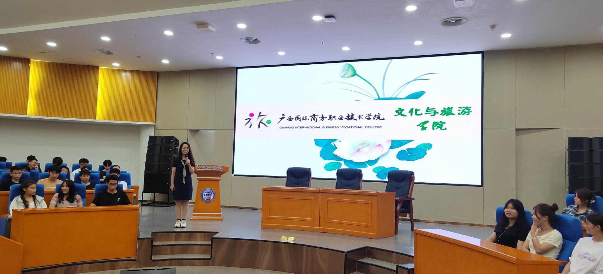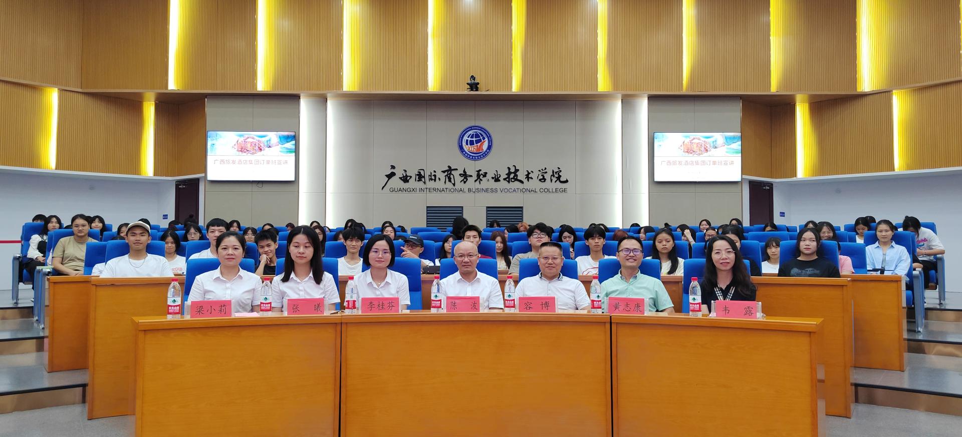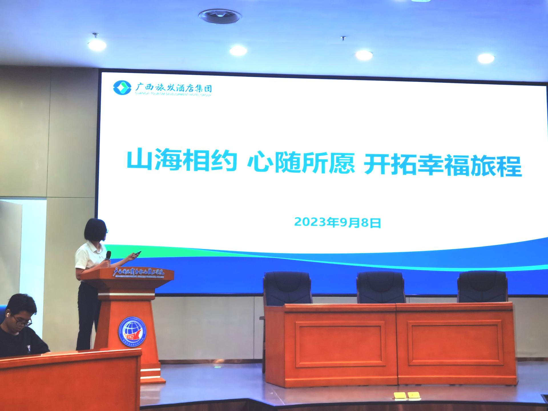 9月8日,文化与旅游学院2023级酒店管理与数字化运营专业介绍暨与广西旅发酒店集团校企合作订单班宣讲活动在我校东盟校区图书馆1楼学术报告厅顺利举行。学校招生就业处处长容博、文化与旅游学院副院长黄志康、广西旅发酒店集团有限公司党委副书记陈波、人力资源部(党委组织部)副经理李桂芬等校企合作关系对接领导及专业师生参加了本次活动。