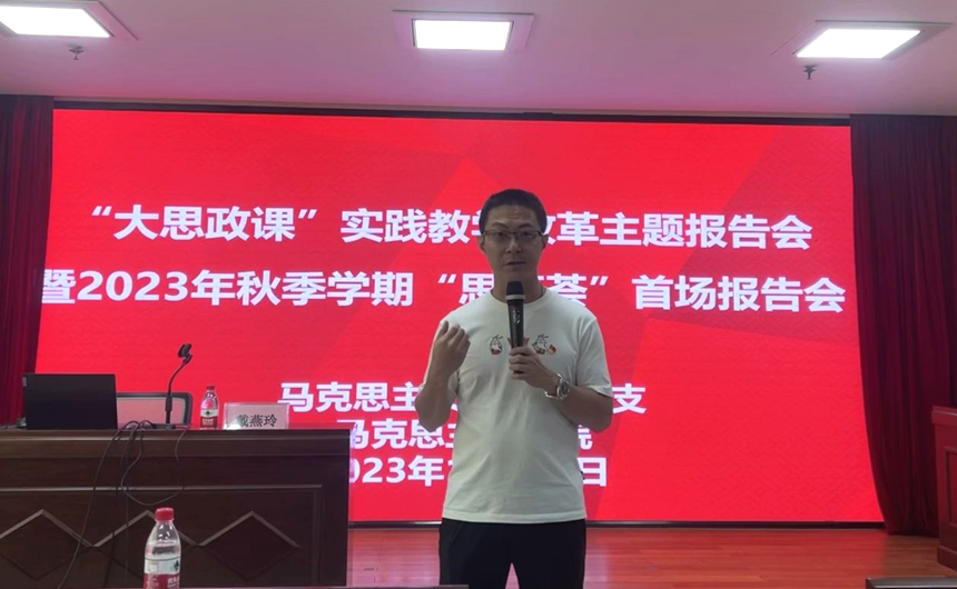 为深入贯彻落实习近平总书记关于“大思政课”的重要指示批示精神,全面推进学校“大思政课”建设,探索思政课实践教学新模式,10月13日上午,在大学路校区图书馆8楼报告厅,马克思主义学院举办“大思政课”实践教学改革主题报告会暨2023年秋季学期“思享荟”首场报告会。报告会邀请广西卫生职业技术学院马克思主义学院院长戴燕玲教授主讲,我校马克思主义学院院长梁芷铭教授主持,马院全体专兼职教师参加。