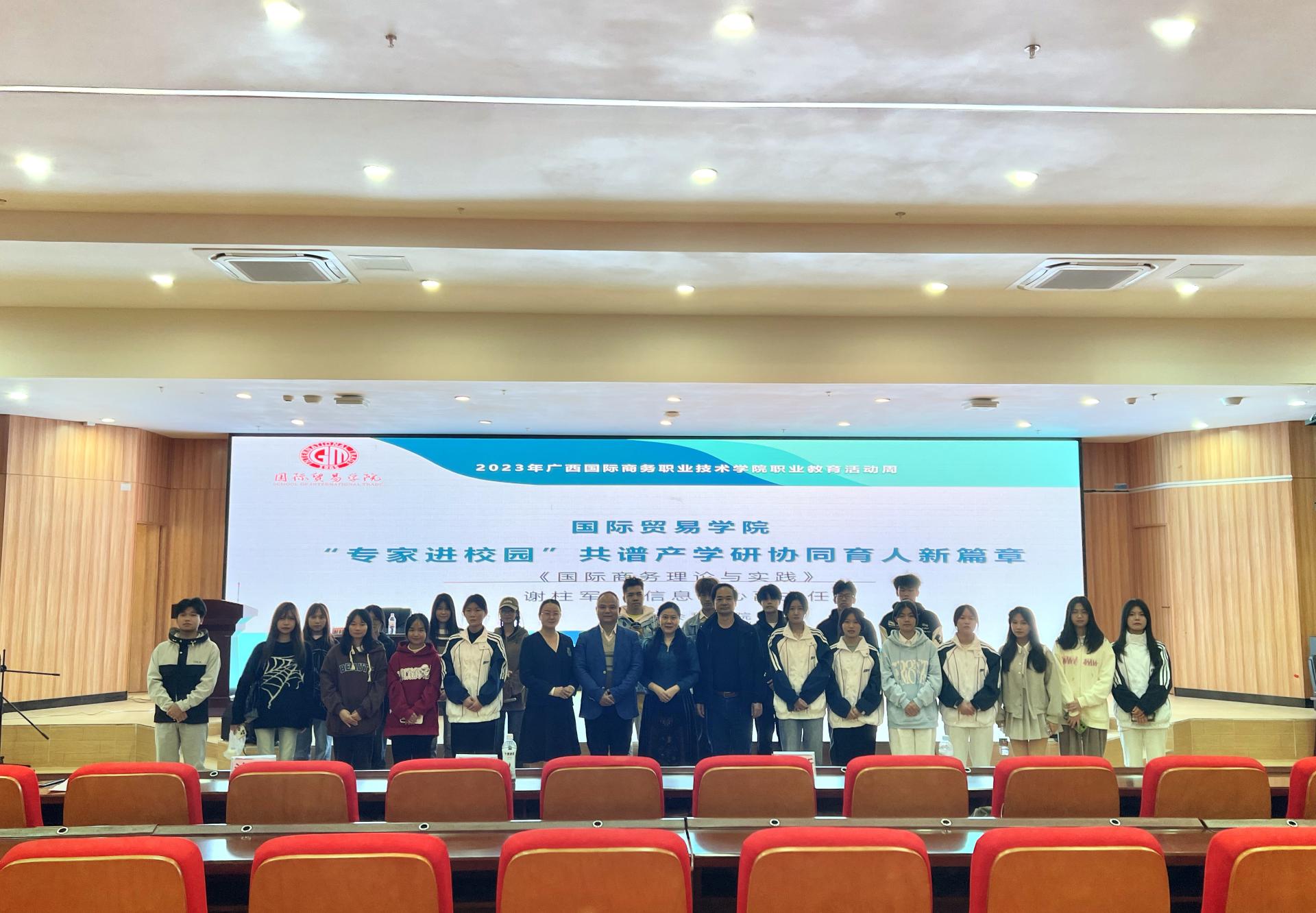 2023年11月14日,我校东盟校区师生活动中心报告厅座无虚席、掌声雷动。这里正在举行我校国际贸易学院“专家进校园”共谱产学研协同育人新篇章的活动。我校前身广西对外经济贸易学校87业务班的优秀代表、广西社会科学院正高级研究员、信息中心副主任谢柱军为师生们做主题为“国际商务理论与实践”的精彩讲座。