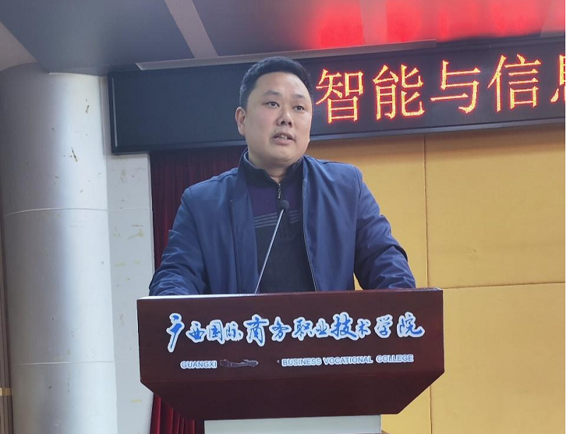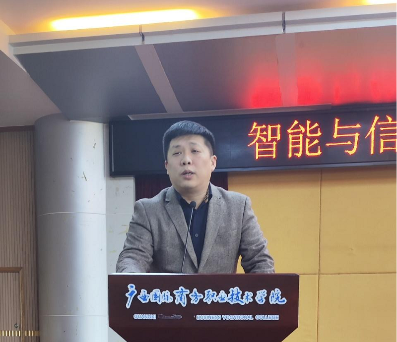首先,由郑蕾发表了热情洋溢的开场致辞。他对所有获奖选手及指导老师表示了热烈的祝贺,并对给予比赛大力支持的合作伙伴广西塔易信息技术有限公司表示衷心的感谢。他强调,职业教育在国家教育事业中占据着举足轻重的地位,是推动经济社会发展和劳动就业的重要力量。此次技能大赛不仅为即将到来的广西区职业大赛打下了坚实基础,更强化了同学们的技能训练和团队协作能力,为同学们提供了一个难得的学习、交流与竞技的平台。