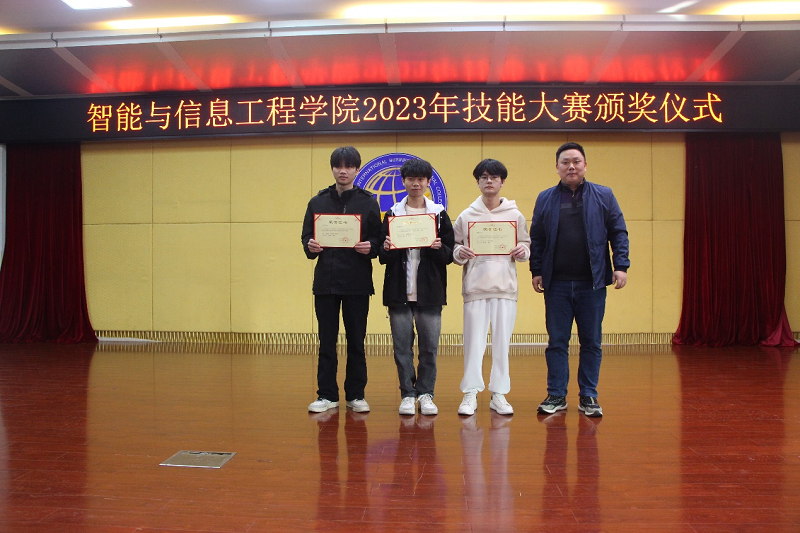 12月26日下午,我校智能与信息工程学院在大学路校区图书馆11楼举行2023年技能大赛颁奖仪式。智能与信息工程学院副院长郑蕾、党总支副书记李冬、党总支专职副书记潘慧妮、副院长周菊瑄,广西塔易信息技术有限公司联合创始人总经理龙振宁、人事总监徐洢雯、产品项目经理吴秀妮,以及智能与信息工程学院的教师代表和学生代表出席了此次颁奖仪式。
