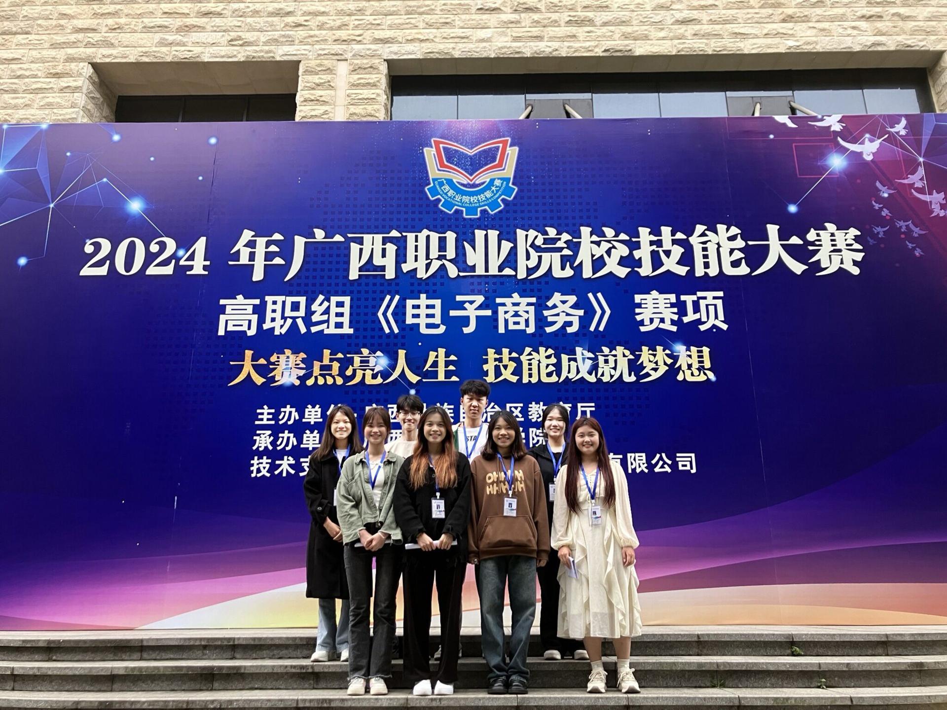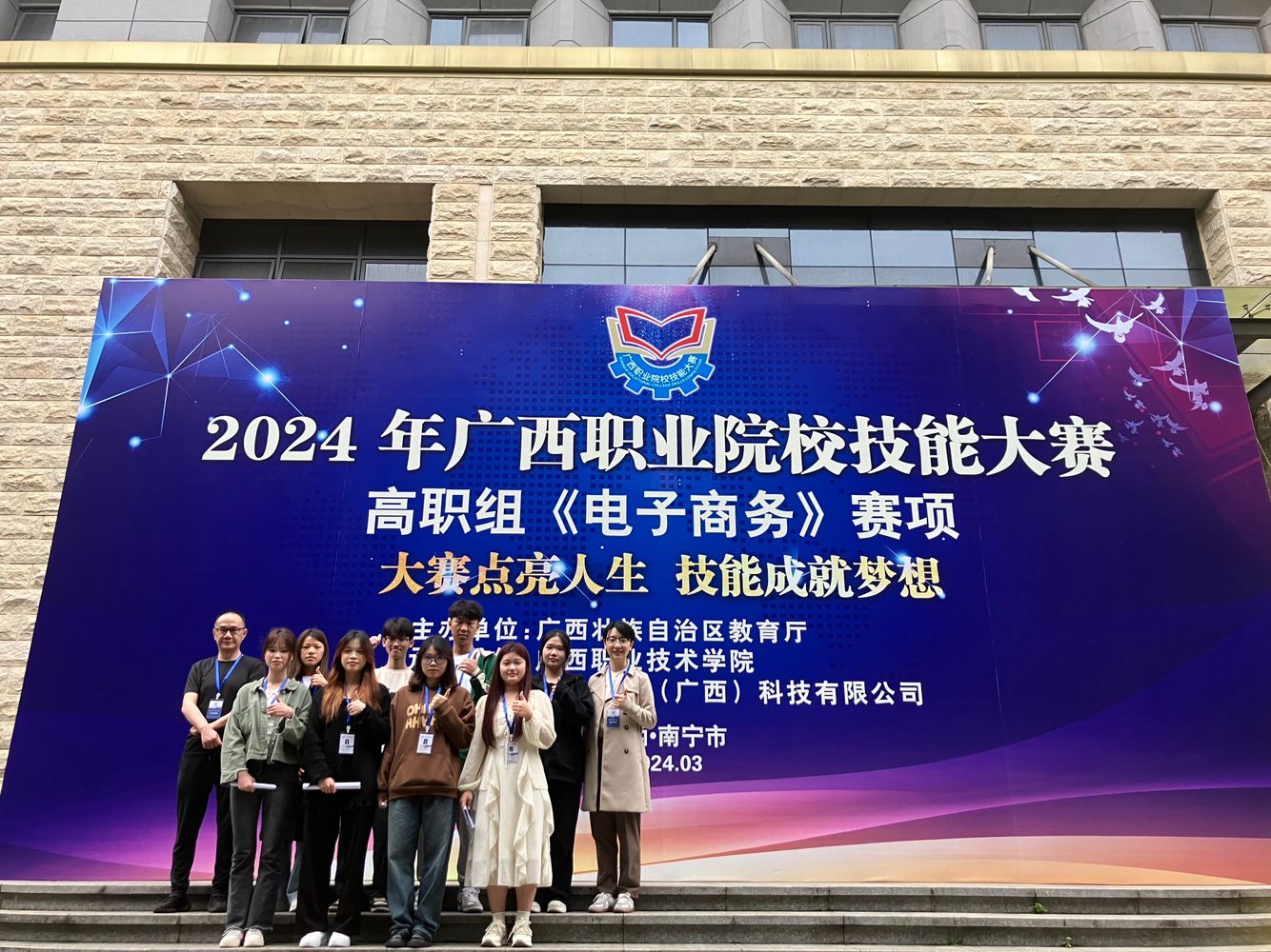 2024年3月18日-19日,由自治区教育厅主办的2024年广西职业院校技能大赛高职组《电子商务》赛项在广西职业技术学院落下帷幕。来自全区35所学校的69支队伍同台竞技,切磋技艺。我校派出的2支队伍8名选手严谨求实、沉着应赛,经过激烈的角逐,斩获了第五名和第三十三名的佳绩。