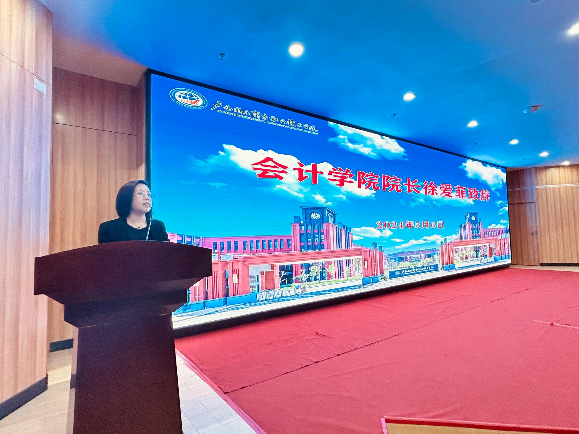 为实现资源共享、优势互补,提升人才培养质量、促进产学研一体化以及增强社会服务功能,共同推动教育、科研和产业的协同发展,5月6日上午,会计学院在东盟校区师生活动中心三楼报告厅顺利举行2024年校企合作授牌暨开班仪式。会计学院党总支书记袁维新、院长徐爱菲、审计教研室主任欧阳欣卉等老师,南宁江侨财税咨询服务有限公司总经理梁江玉一行2人,广西安驰财务管理有限公司运营总监甘宏记一行5人,第一期“江侨财税服务学徒班”(以下简称“江侨班”)学员以及第一期、第二期“安驰财税审服务学徒班”(以下简称“安驰班”)学员、会计学院理财协会、沙盘协会的同学参加本次活动。活动由会计学院教师唐东海主持。