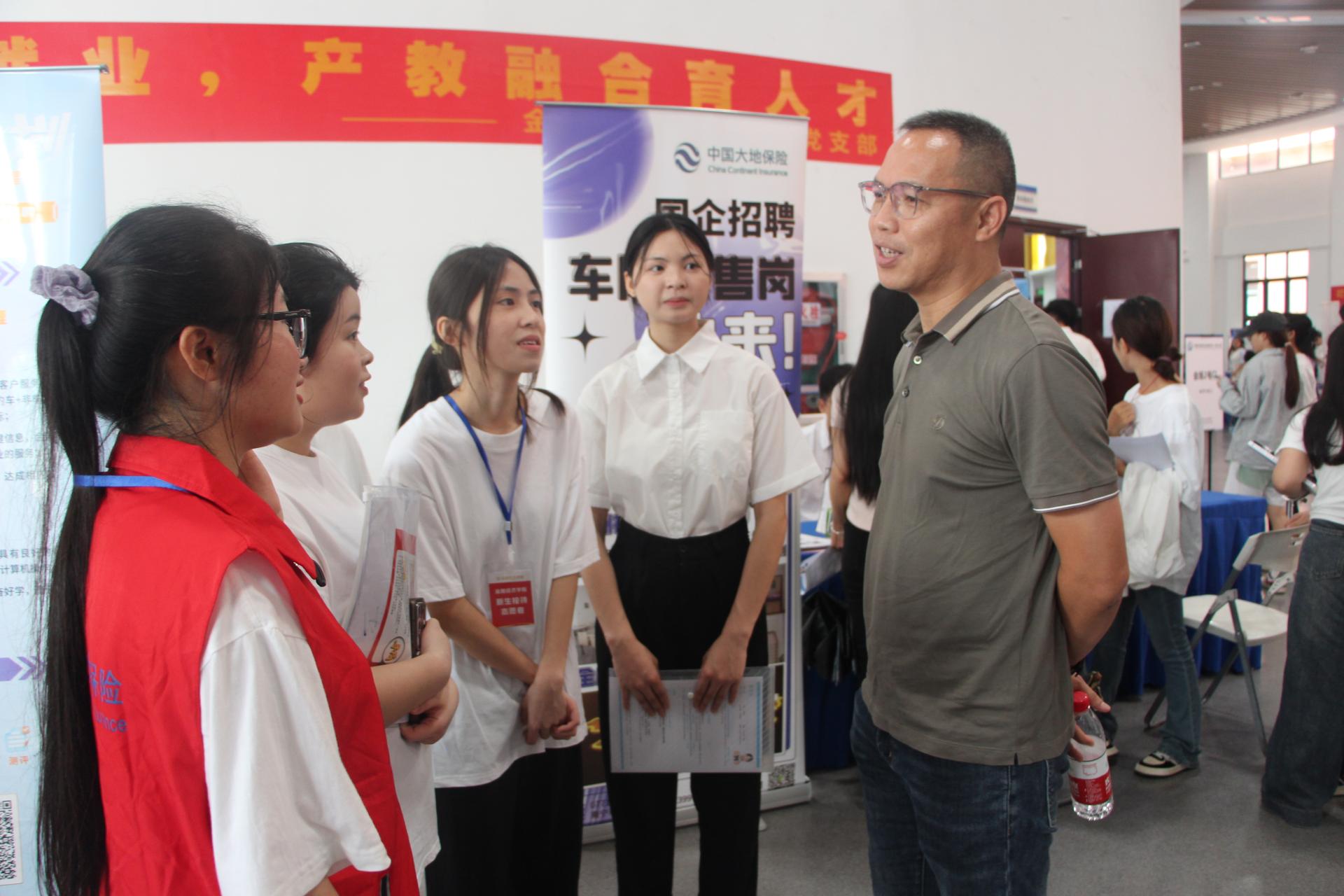 我校金融经济学院党总支书记李冬华到双选会现场,与用人单位深入交流,了解招聘政策、发展前景、薪资待遇等各方面情况;与求职学生交流,关心求职学生的就业意向,嘱咐同学们要把个人理想融入到国家事业中去,树立正确的就业观、择业观,努力实现自己的人生价值。
