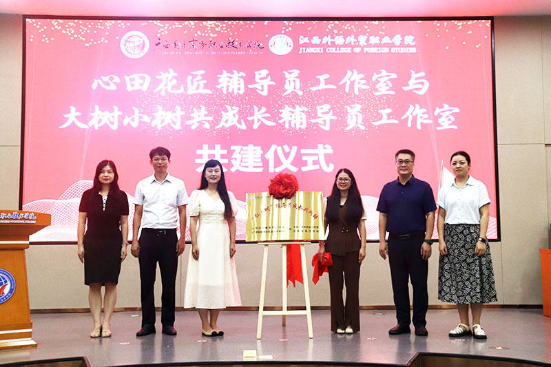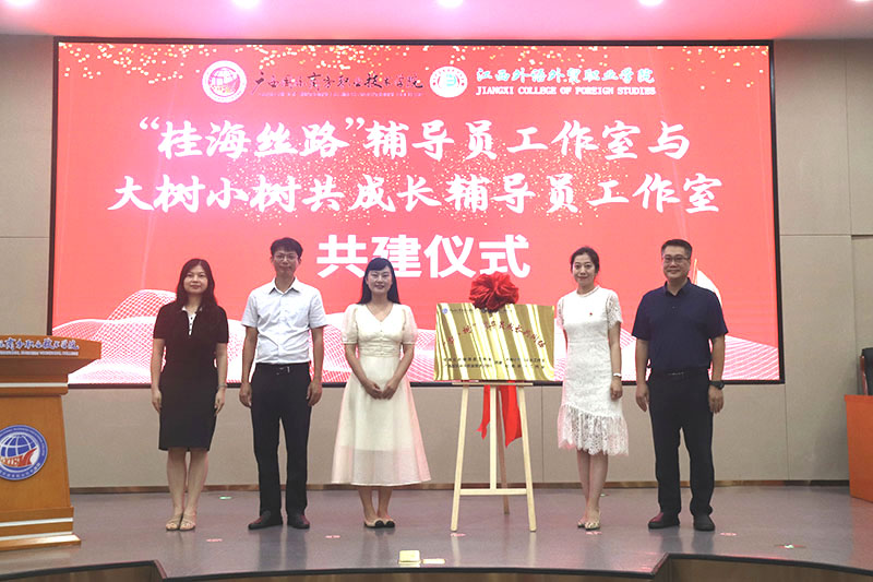在共建挂牌仪式上,在全体与会人员共同见证下,“大树小树共成长”辅导员名师工作室主持人宫婷婷,“桂海丝路”辅导员工作室主持人葛蕊、“心田花匠”辅导员工作室主持人李燕共同为共建辅导员工作室揭牌。