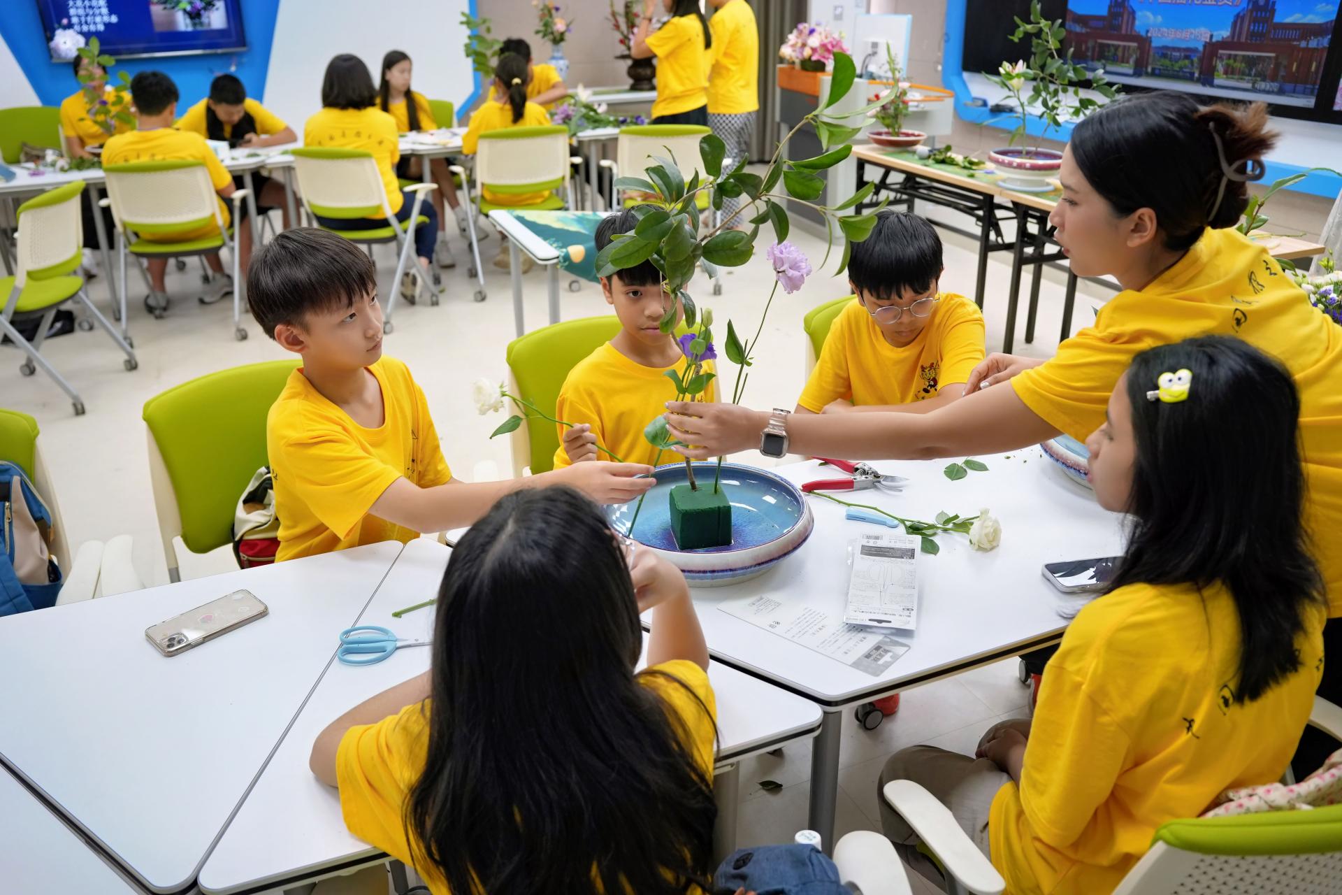 学员们在进行插花创作