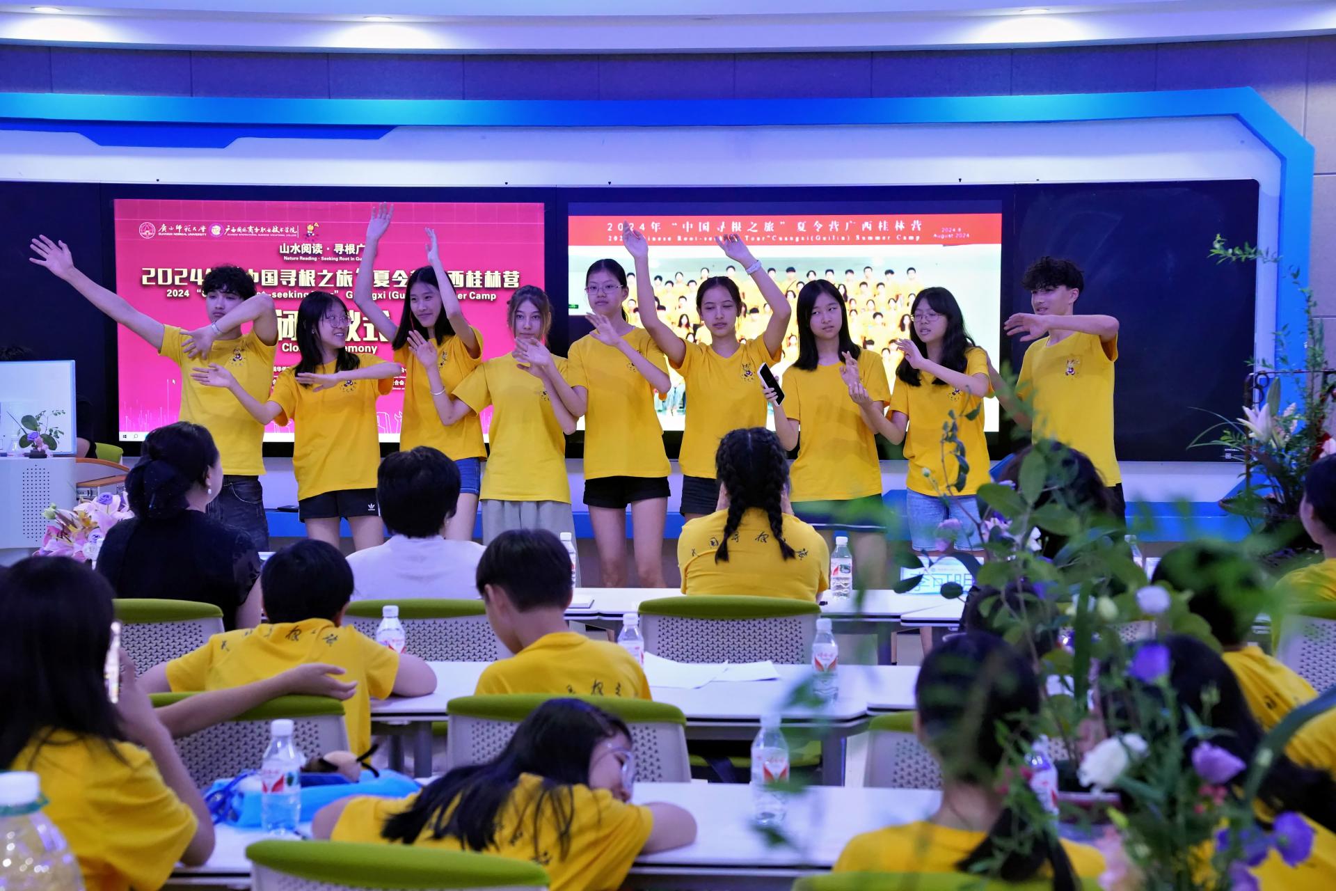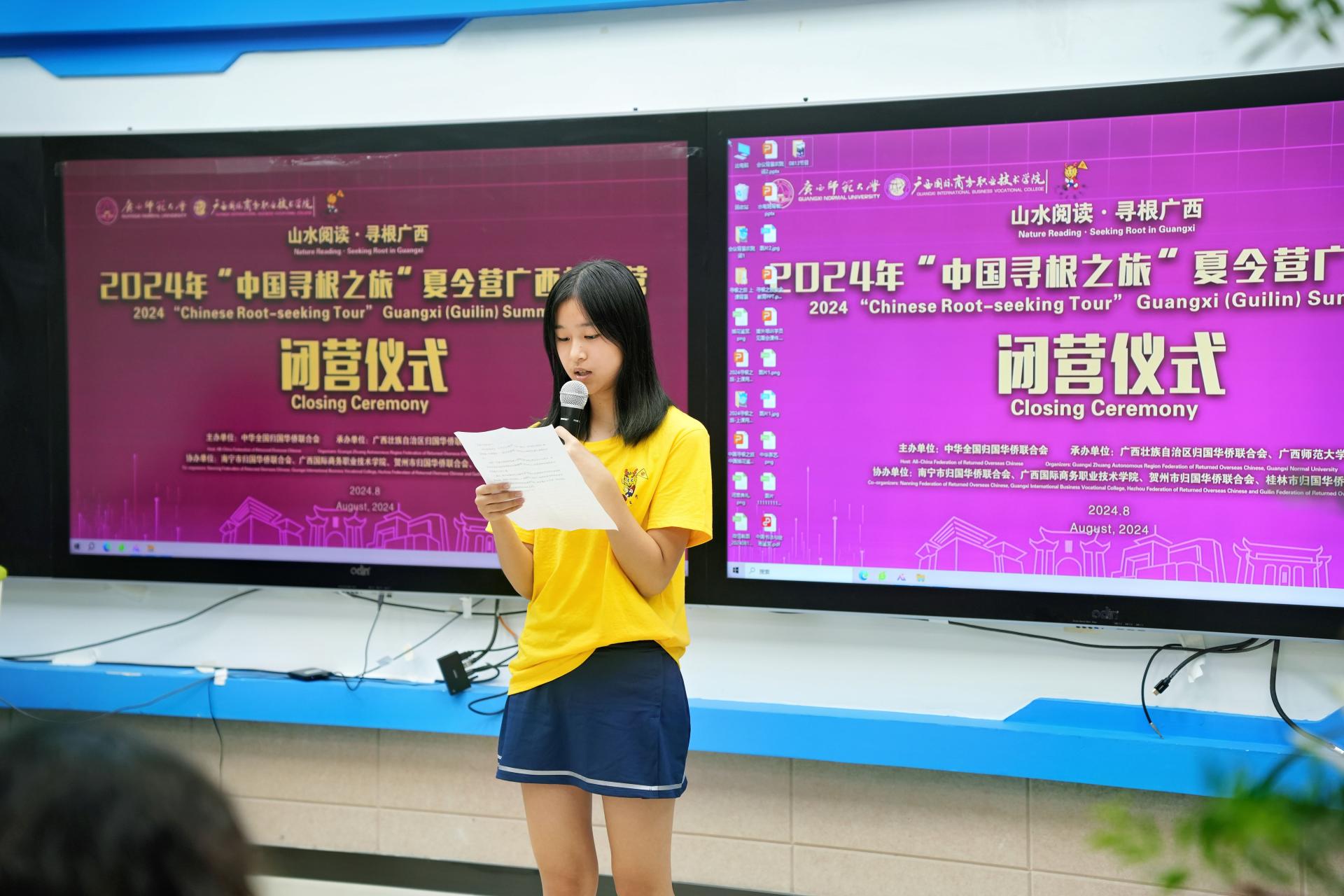 闭营仪式上,与会嘉宾为领队老师和营员颁发证书,海外华裔青少年通过歌舞、歌曲等表演,为这次寻根之旅划上圆满句号。