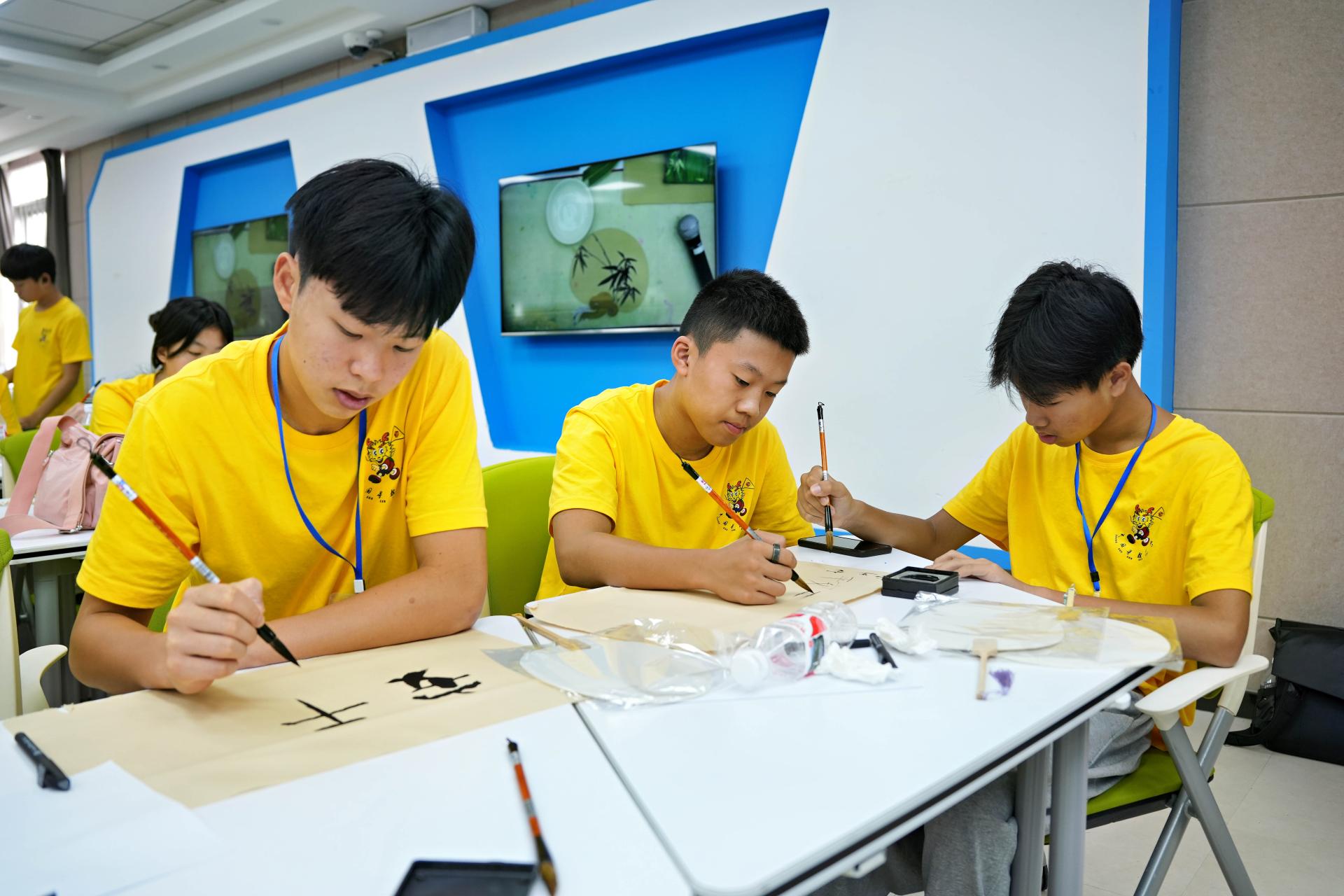 学员们在练习毛笔字