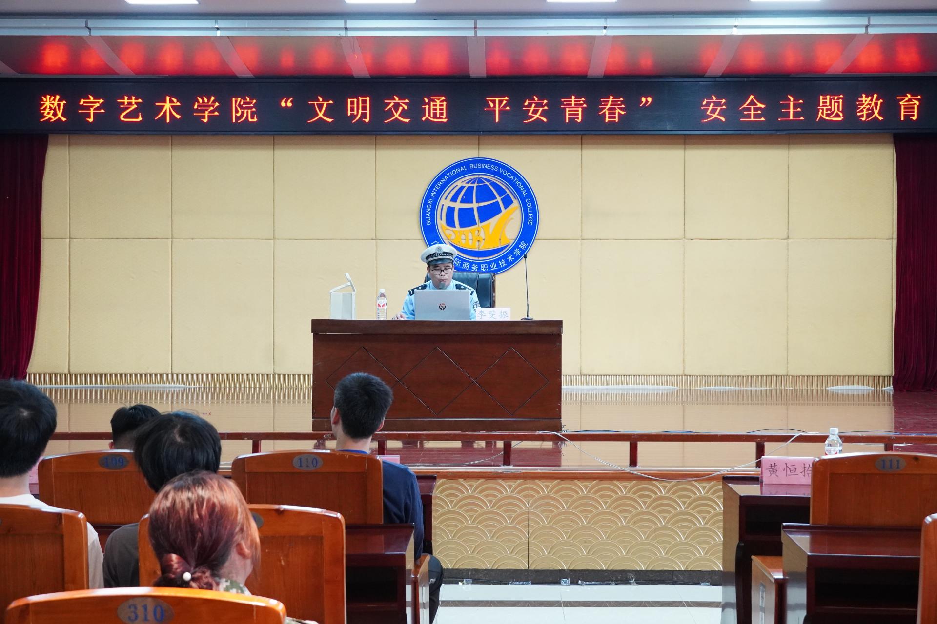 数字艺术学院党总支书记黄恒拾、南宁市交警支队八队队长李斐振、智能与信息工程团总支书记韦名富、数字艺术学院团总支书记谭丽君出席了本次讲座。数字艺术学院、智能与信息工程学院、国际贸易学院、文化与旅游学院辅导员代表与学生代表共300余名师生参加了本次活动。