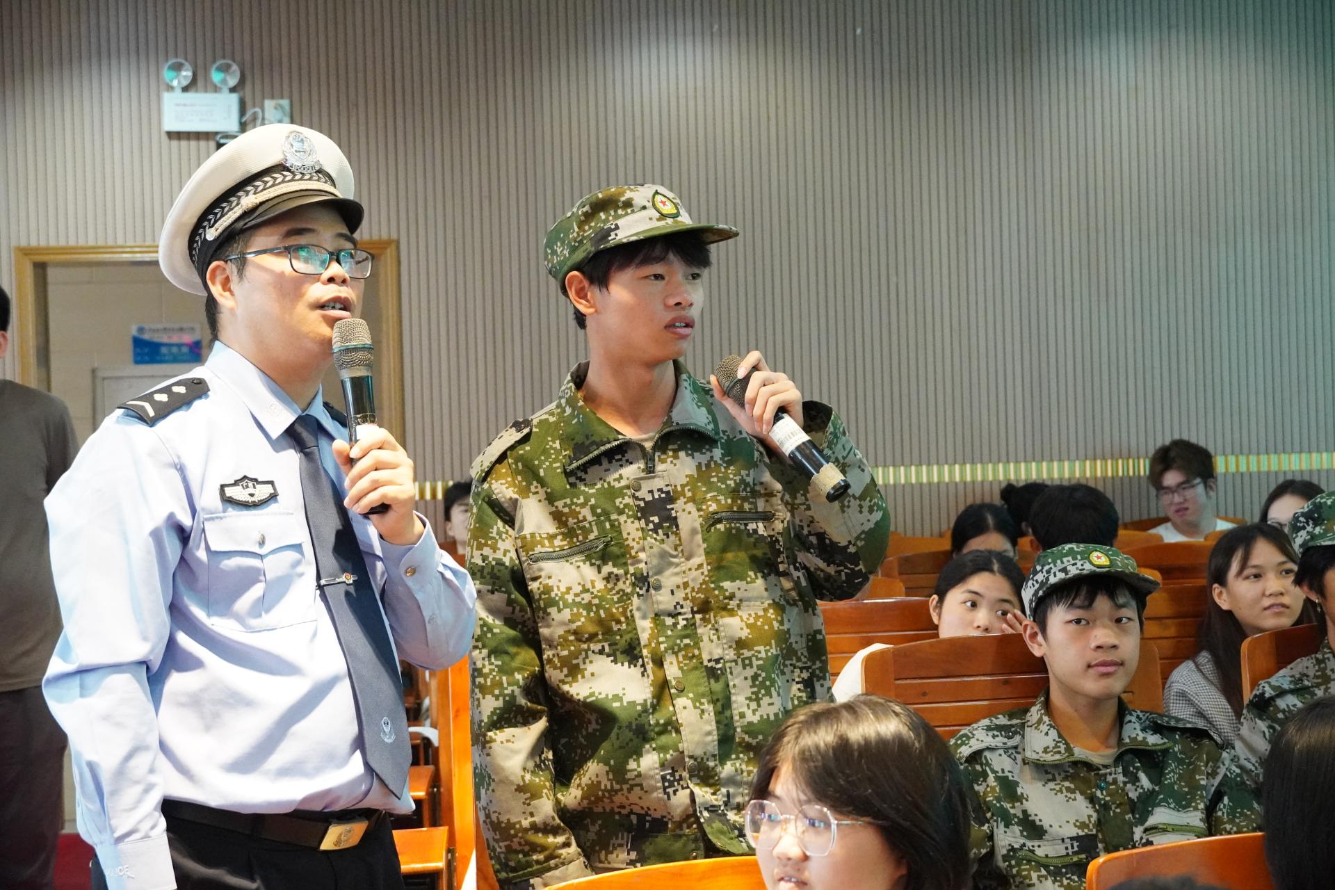 在讲座现场,南宁市公安局交警支队八支队队长李斐振用幽默通俗的语言进行深入浅出地讲解,从步行、骑车、乘车等各种日常出行方式中需要注意的安全事项出发,循序渐进地向同学们传授实用的交通安全知识。同时,李斐振结合近年来南宁市发生的典型案件,以案说法,向同学们讲解闯红灯、违规驾驶电动车、超速、饮酒驾驶等交通违法行为的危害,警示教育同学们要严格遵守道路交通法律法规,时刻紧绷交通安全弦,从自身做起,安全文明出行。整个宣讲过程中,李斐振不时与学生进行互动,将宣讲活动推向高潮,更让“安全文明出行”的意识潜移默化地印刻在同学们的脑海中。