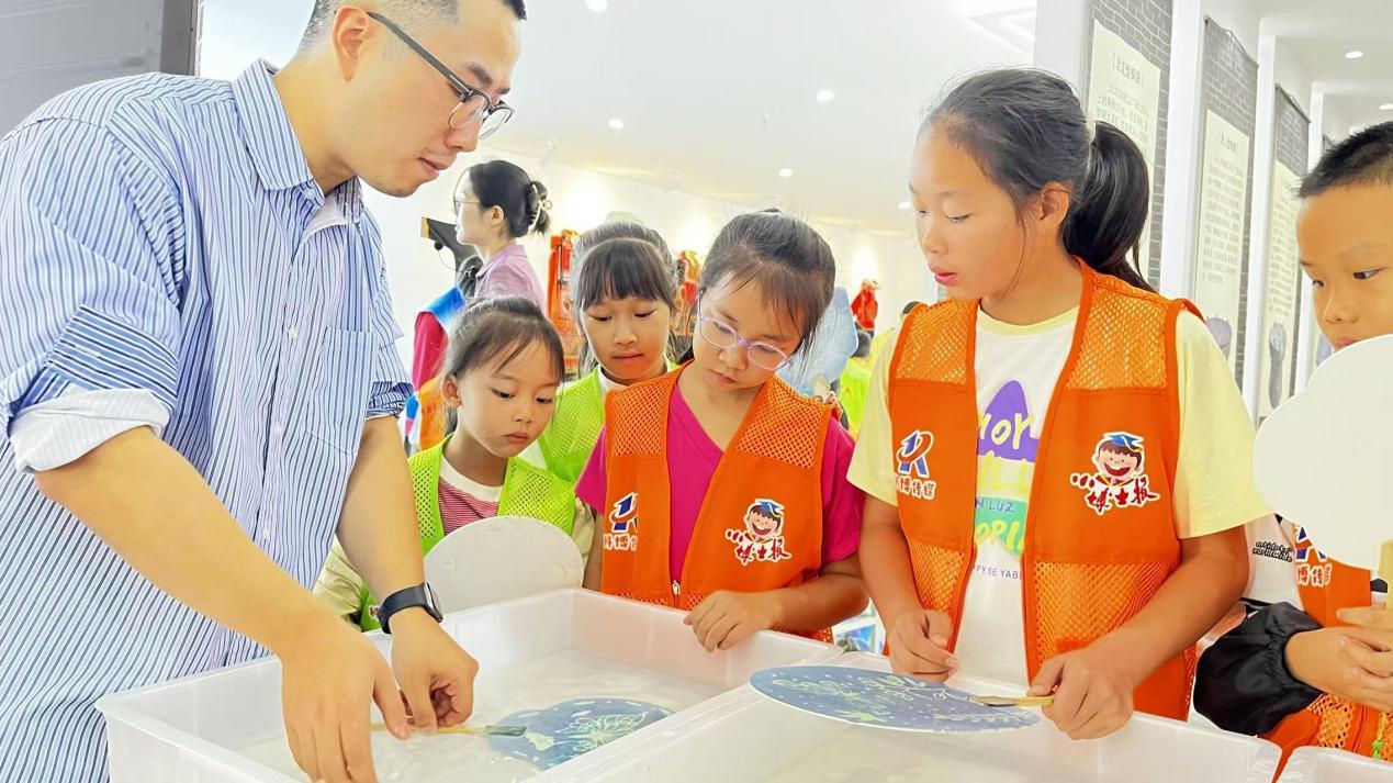 董三甲指导小学员们开展蓝晒摄影体验活动