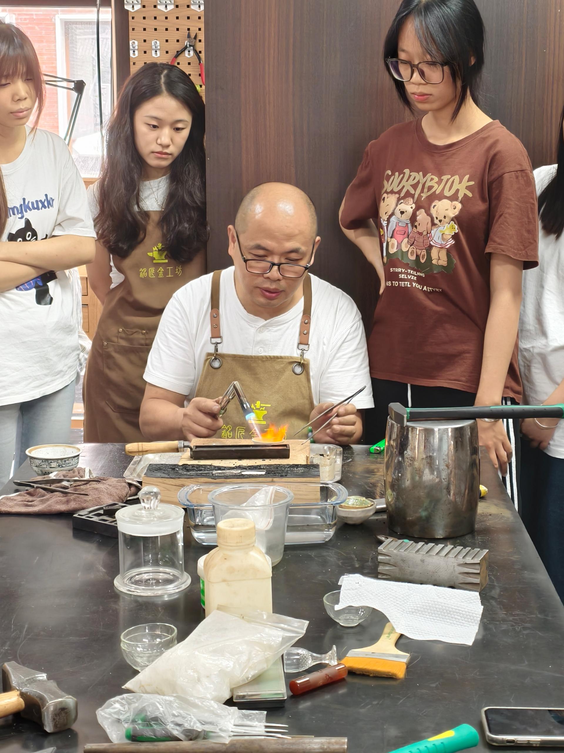 7月4日,为期两个月的“金工学徒制班”集中实习圆满结束。该项目由我校国际贸易学院(跨境电子商务专业群)电子商务专业、数字艺术学院产品艺术设计专业与南宁铭匠金工坊珠宝店联合打造,最后一场实习汇报的顺利完成标志着实践教学的深度落地。这场深度融合的校企合作项目,将课堂搬进企业一线,让学生们在真实的商业场景中锤炼技能,实现了从“电商学子”到“金工电商新锐”的华丽蜕变。