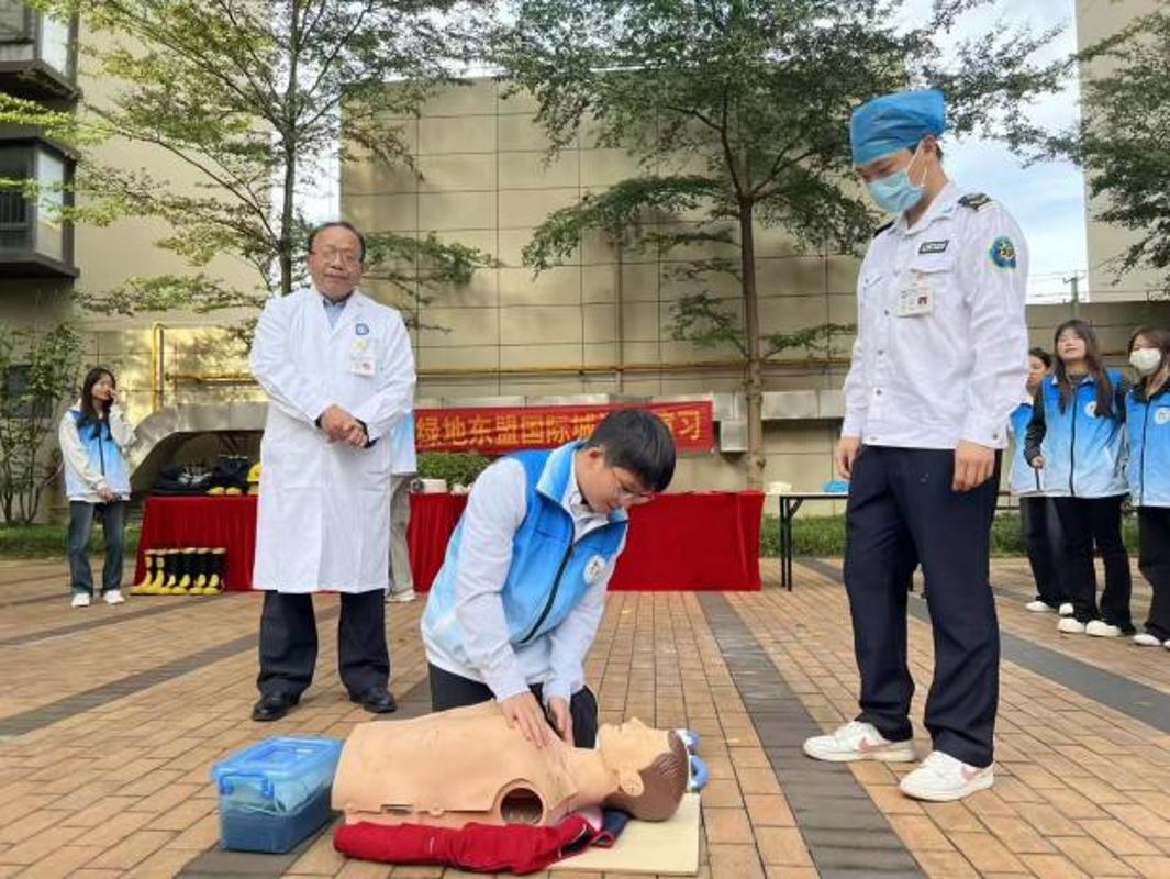 活动现场,医护人员通过模拟人偶,详细演示了CPR(心肺复苏)的标准流程,包括胸外按压部位、力度、频率及人工呼吸要点,并介绍了AED(自动体外除颤器)的使用场景与操作规范。在医护人员的指导下,同学们逐一进行实操练习,从判断意识、呼救到规范按压,逐步掌握急救核心技能。