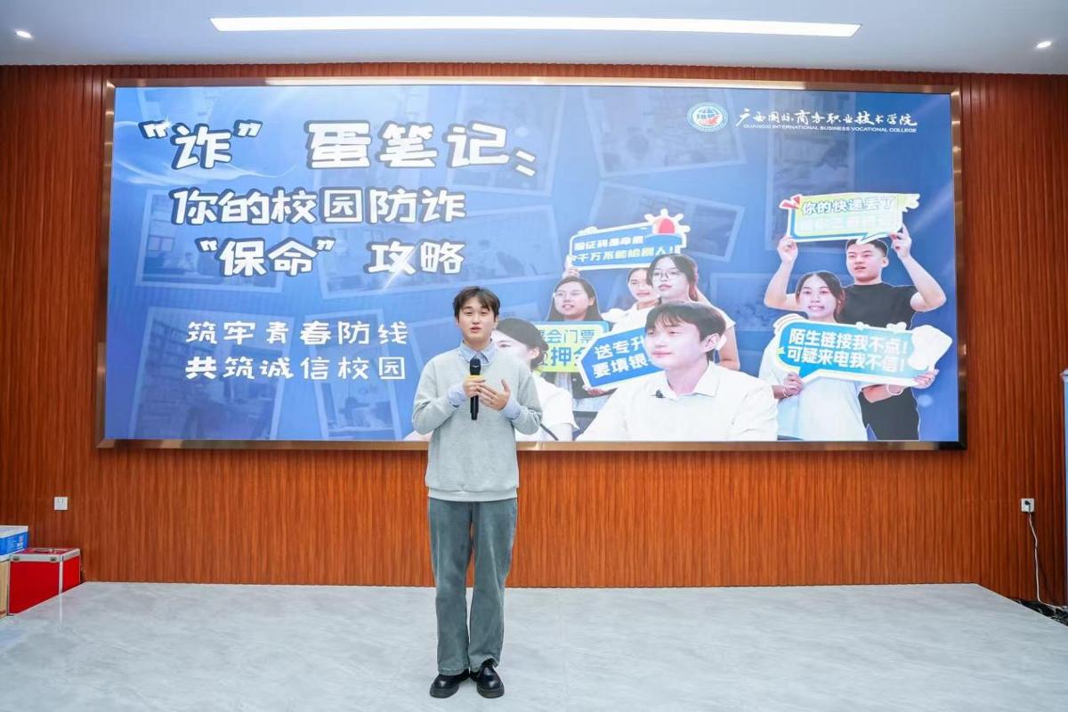 近日,由广西壮族自治区教育厅主办、广西壮族自治区学生资助管理中心承办的2025年全区高校“筑牢青春防线,共筑诚信校园”主题微视频比赛决赛圆满落幕。我校选送作品《“诈”蛋笔记:你的校园防诈“保命”攻略》凭借生动的剧情、实用的反诈知识和鲜明的教育意义,从全区89所高校的激烈竞争中脱颖而出,成功晋级决赛20强,并最终荣获三等奖,充分展现了我校在学生诚信教育与反诈宣传工作中的创新实践与丰硕成果。