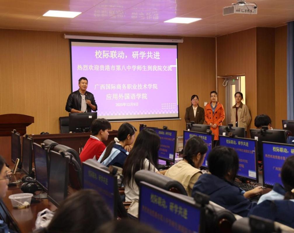 12月9日,贵港市第八高级中学100名师生走进应用外国语学院,开启一场“语言赋能教育,实践点亮成长”主题研学活动。通过“看、听、演、做”四维沉浸式体验,贵港八中学生深度感受“外语+托育”交叉融合的专业魅力与育人温度。