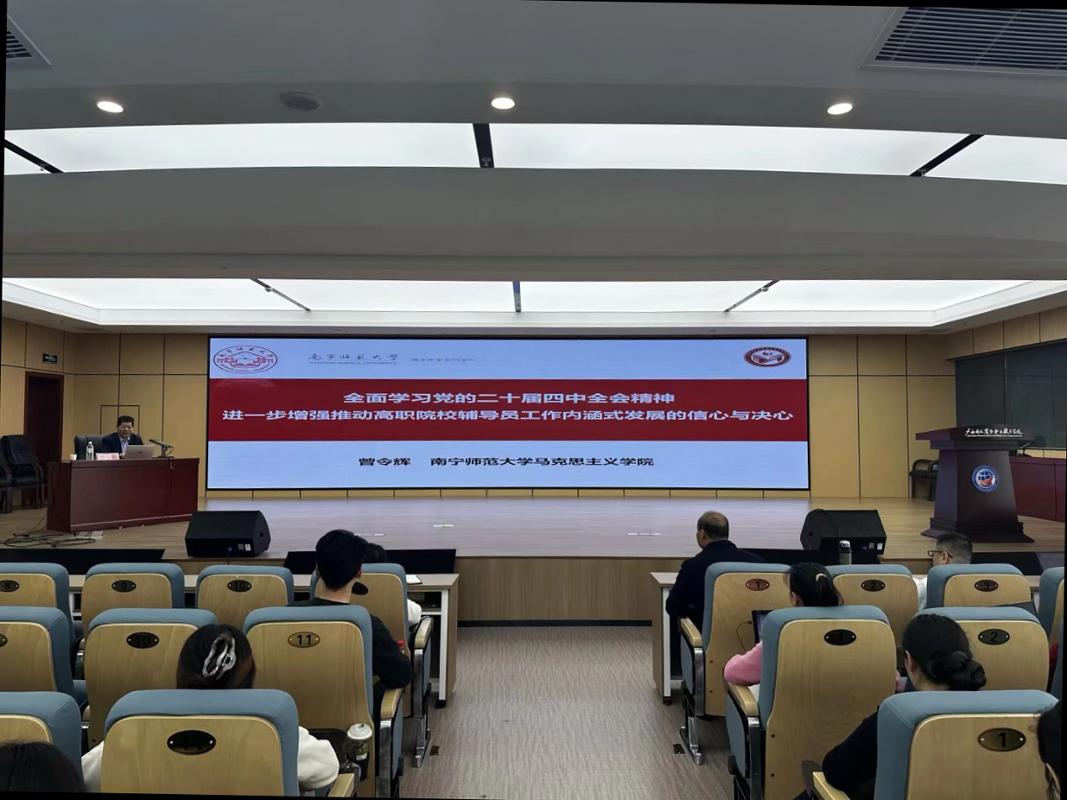 在思想引领方面,南宁师范大学马克思主义学院院长曾令辉教授作党的二十届四中全会精神专题报告,他指出,辅导员要提升政治素养,将全会精神融入育人全过程,推动高职教育内涵式发展。广西大学后勤基建处党委书记黄必春结合学生意外事件处置策略,详细讲解预防、应对、善后全流程,强调辅导员作为“第一人、中间人、维护者”的重要角色,提出六项预防举措、十项事中应对要求及闭环管理建议,为一线学生工作提供可操作指导。