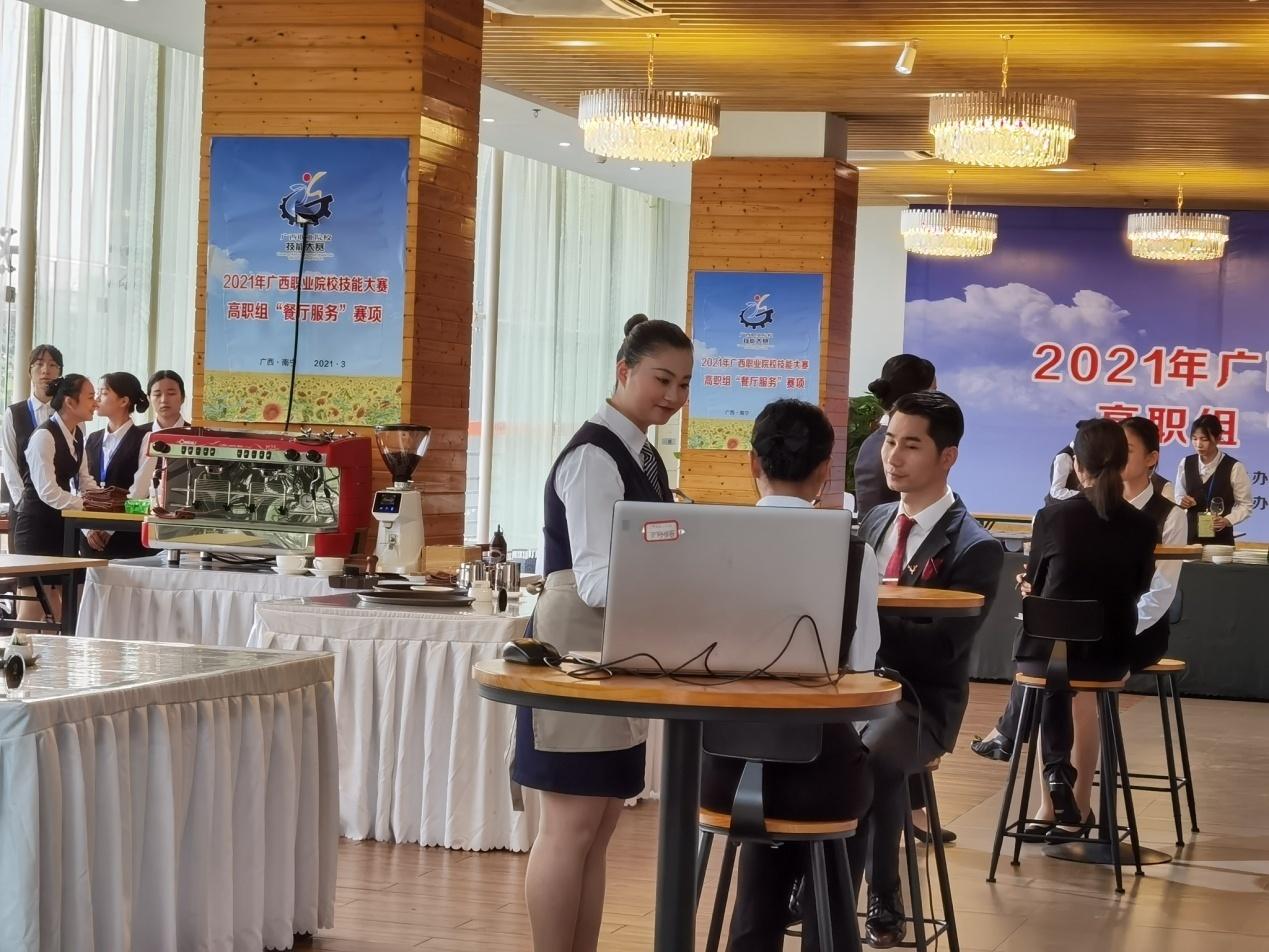 3月30日,由自治区教育厅主办的2021年广西职业院校技能大赛高职组餐厅服务赛项在南宁职业技术学院落下帷幕,来自全区高职院校38支队伍,76名参赛选手同台竞技,我系代表队在比赛中勇夺佳绩。