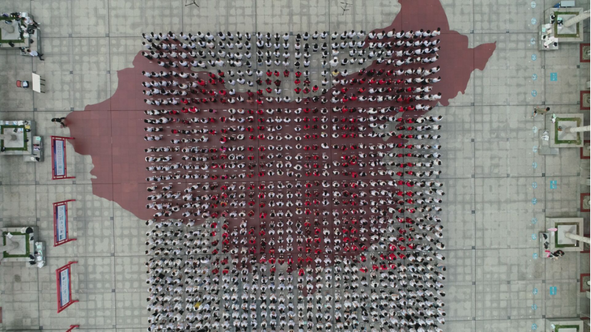接下来全体师生用“没有共产党就没有新中国”的歌声来表达对党的感激之情。