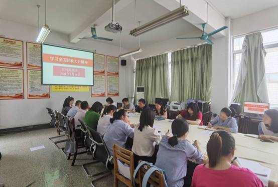陆纯梅(中)领学“全国职业教育大会”精神