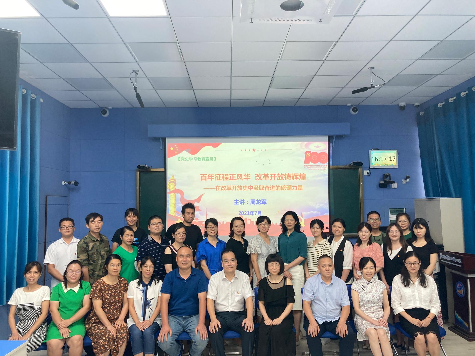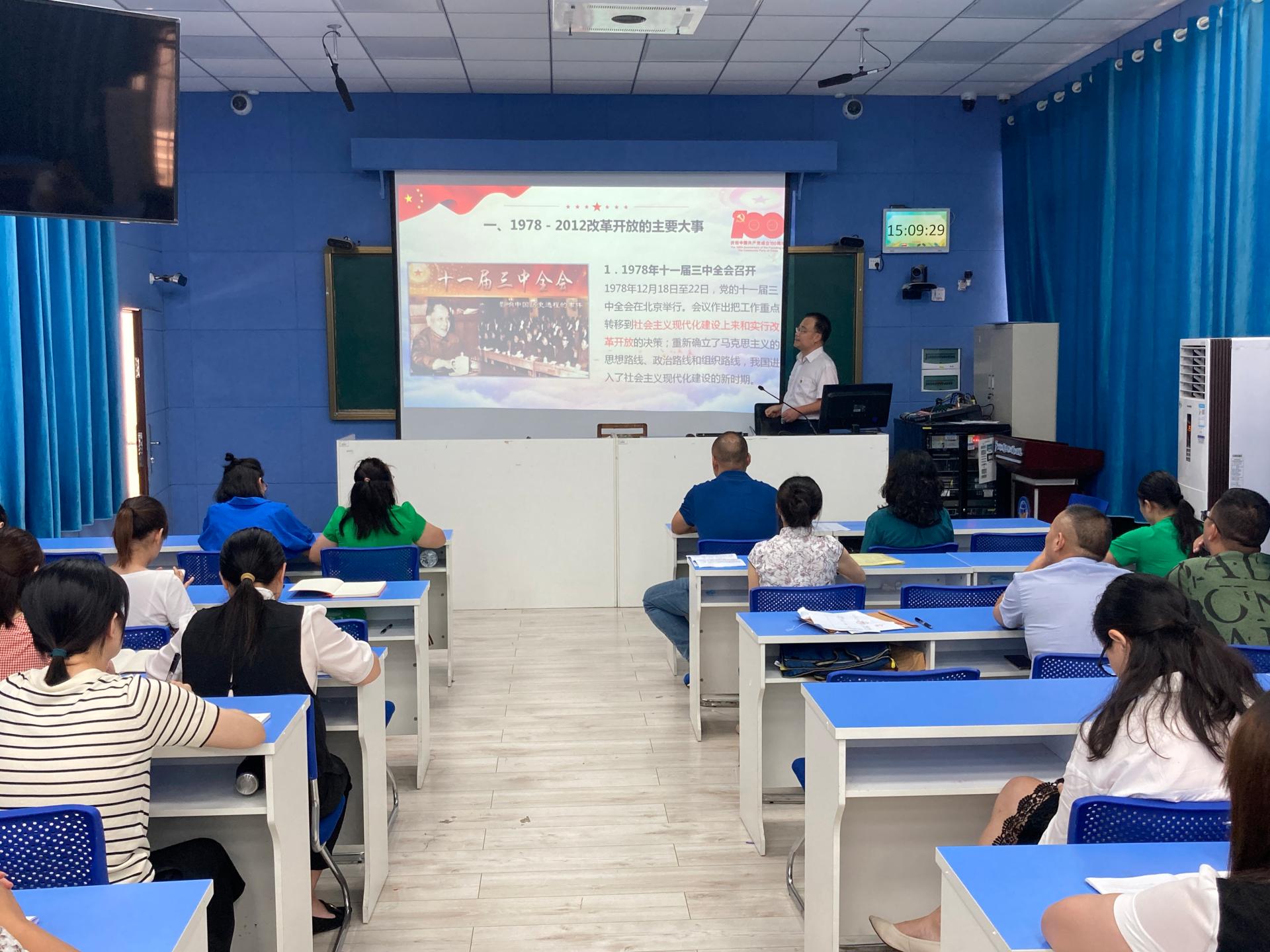 为贯彻落实党中央以及学校党委关于开展党史学习教育的相关工作要求,抓好党史学习教育,7月6日下午,机关党总支宣传委员周龙军教授在3-112教室为机关第十五、十六党支部全体党员讲授了《百年征程正风华 改革开放铸辉煌》的党史学习教育专题党课。