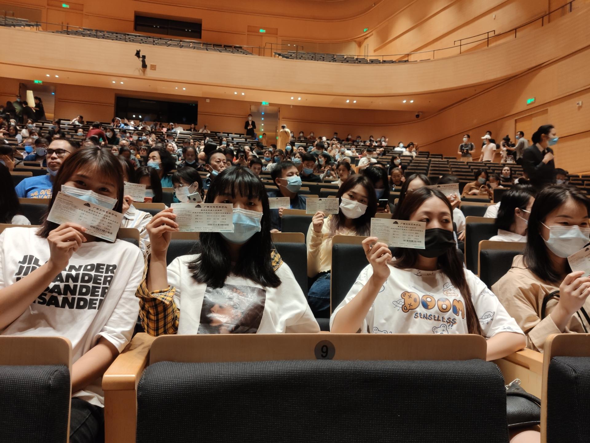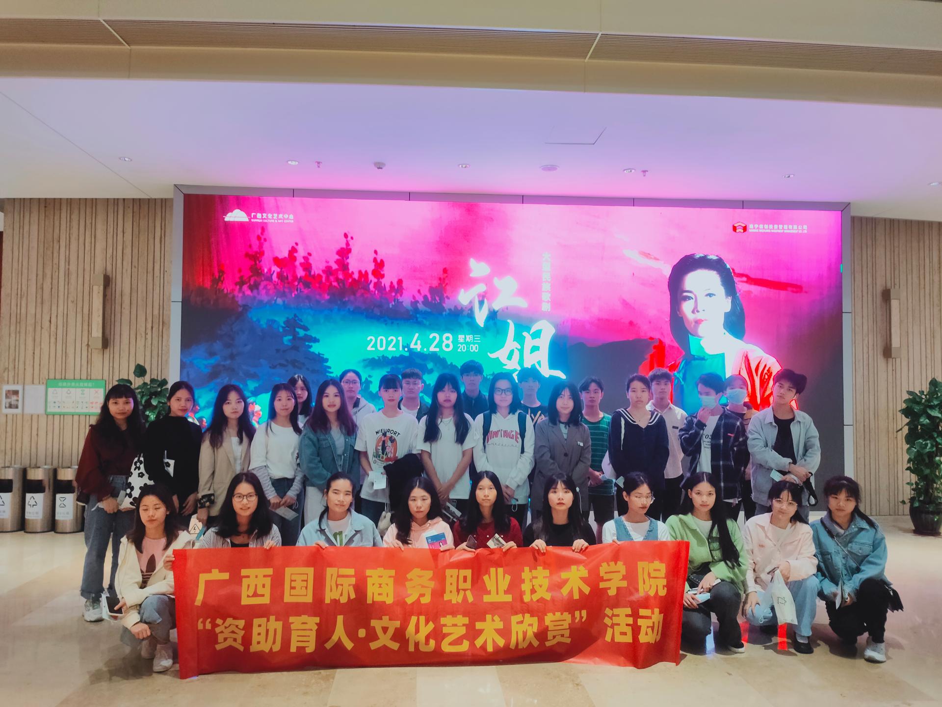 2021年3月至6月期间,大学生资助中心以中国共产党成立100周年为契机,结合党史学习教育的要求,先后组织近百名家庭经济困难学生前往广西文化艺术中心观看《飘扬在党旗上的旋律》交响音乐会、民族歌剧《江姐》《斗•乐×Ⅱ次元——方锦龙•新九州爱乐2021中国巡回演出》,前往广西戏剧院观看“永远跟党走”广西优秀舞台艺术作品展演剧目京剧《瑶山春》。通过四期“资助育人•文化艺术欣赏”活动,加强对受资助的学生的党史教育和中华传统文化教育,增强爱国爱党意识和民族自豪感。