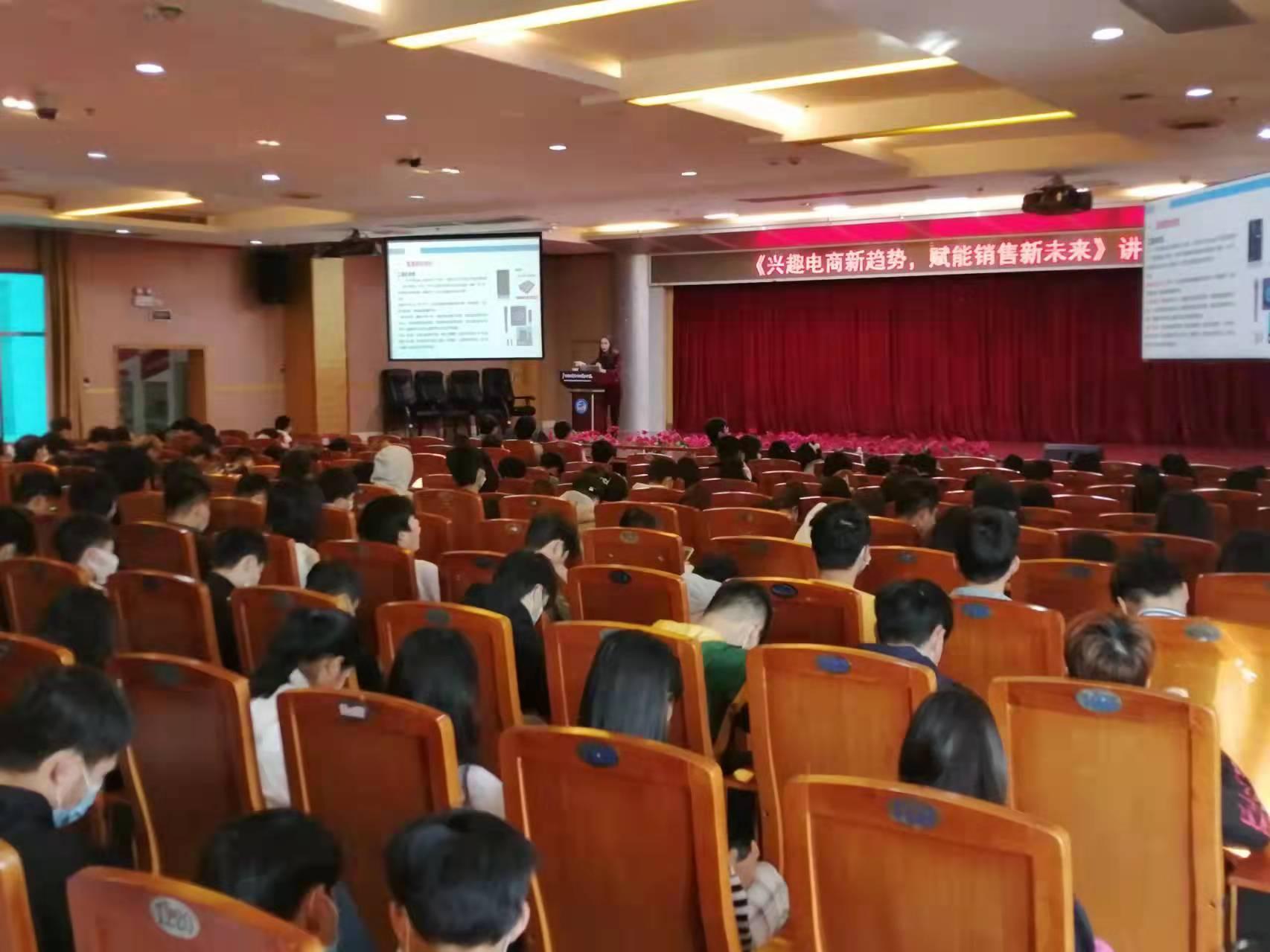 为学习贯彻中国共产党第十九届中央委员会第六次全体会议精神,进一步推进党史学习教育走心走深走实,结合我校就业工作重点和党史学习教育,践行“我为师生办实事”实践活动,12月7日,学校邀请广西麦影文化传媒有限公司麻沁园老师为在校师生作“兴趣电商新趋势,赋能销售新未来”的职场能力提升专题讲座。