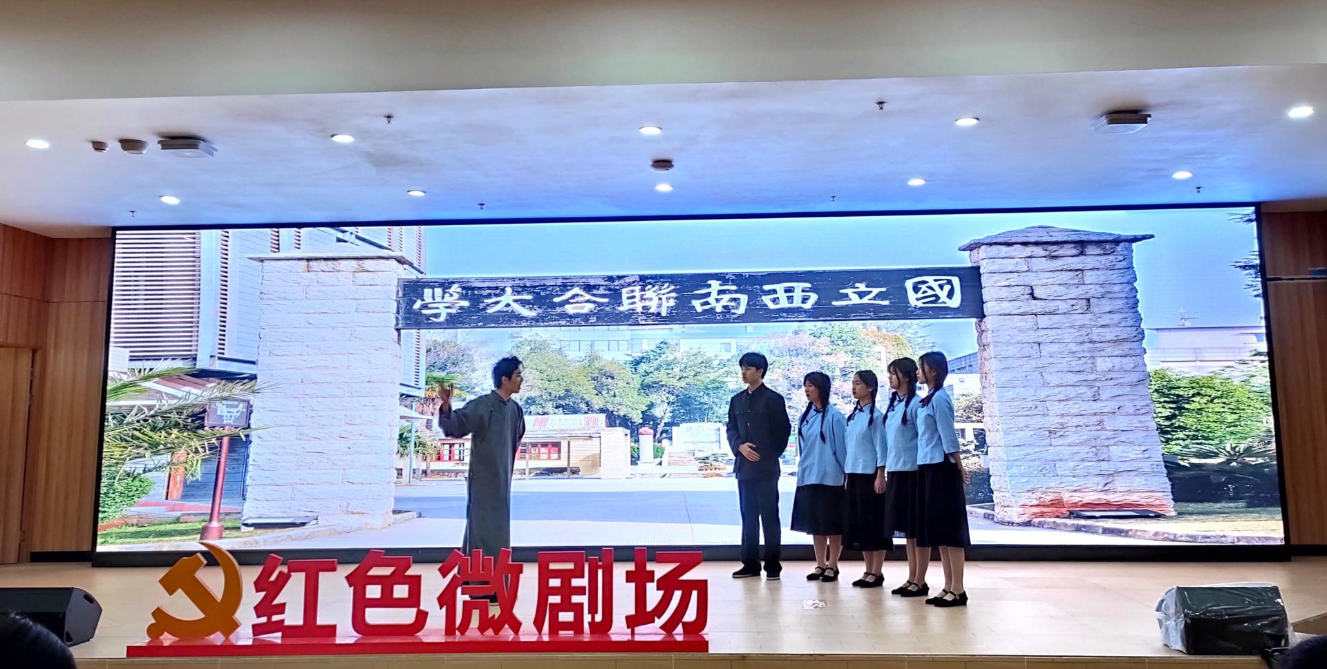 会上,由2021级入党申请人自编自导自演的微剧《战火中的大学生》引起热烈反响。微剧讲述了国立西南联合大学成立的背景以及在其成立的8年零11个月里培养的一批批重要骨干人才的历史故事。微剧里,入党申请人台上铿锵有力的台词,使得台下的观众热血沸腾,仿佛置身其中,思想上受到强有力的震撼,真正感受到台词中所说:“你们要用自己的双手,实现自身的价值,加油啊!我的学生!祖国需要你们!”
