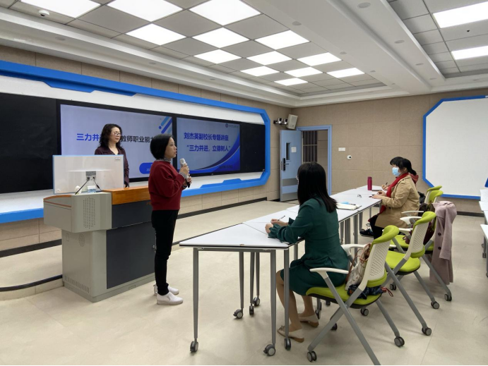 她表示,通过与老师们分享对教师职业和教师能力内涵的理解,希望对大家今后的教学工作有所启发,能真正通过教学去认真思考和创新实践从而收获更多的教学成果,努力成为一名专业能力强、社会服务能力高、职业认同感强的复合型教师。