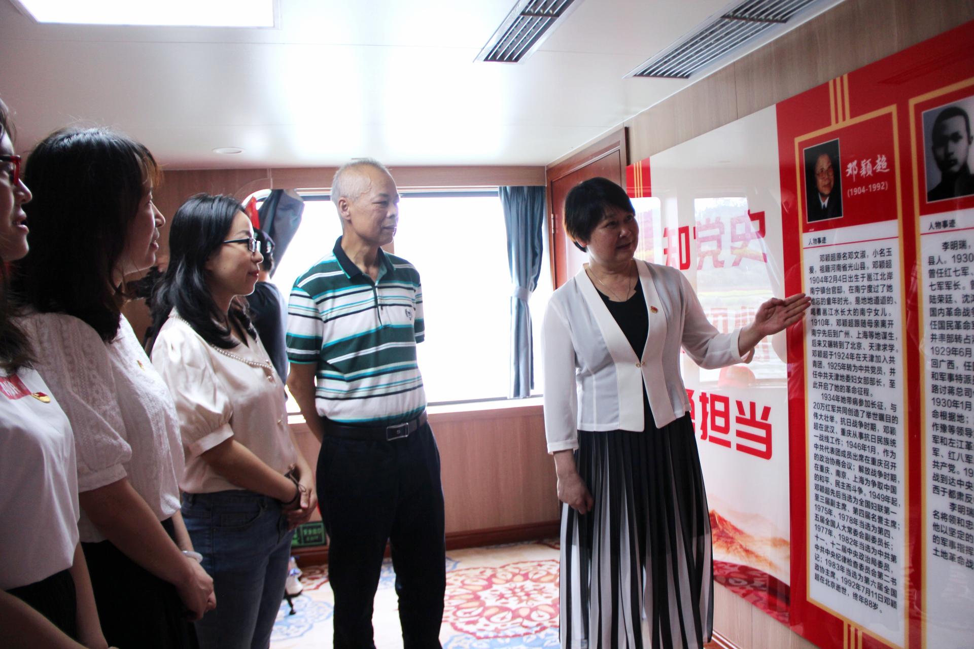 历时两个小时的游船活动中,结合邕江沿岸冬泳亭、洋关码头、雷经天故居、邓颖超纪念馆、南宁兵变馆、邕江防洪堤等南宁红色历史景点的教育,通过“看一次展览,听一次党课,学一次党史,观一次专题片,重温一次入党誓词、感受南宁城市蝶变”的创新学习形式,激励全体党员,重温红船精神,永葆奋斗初心。