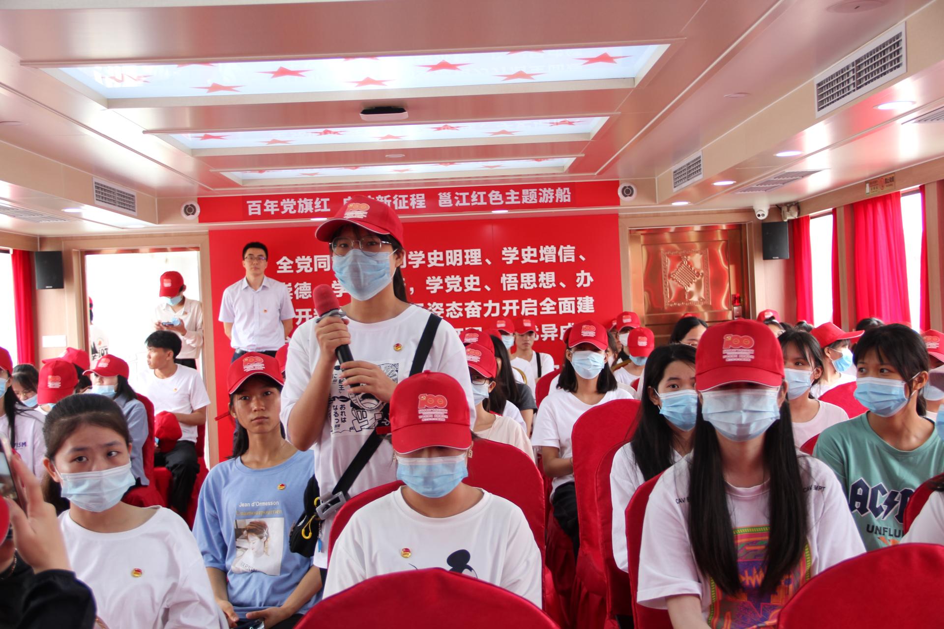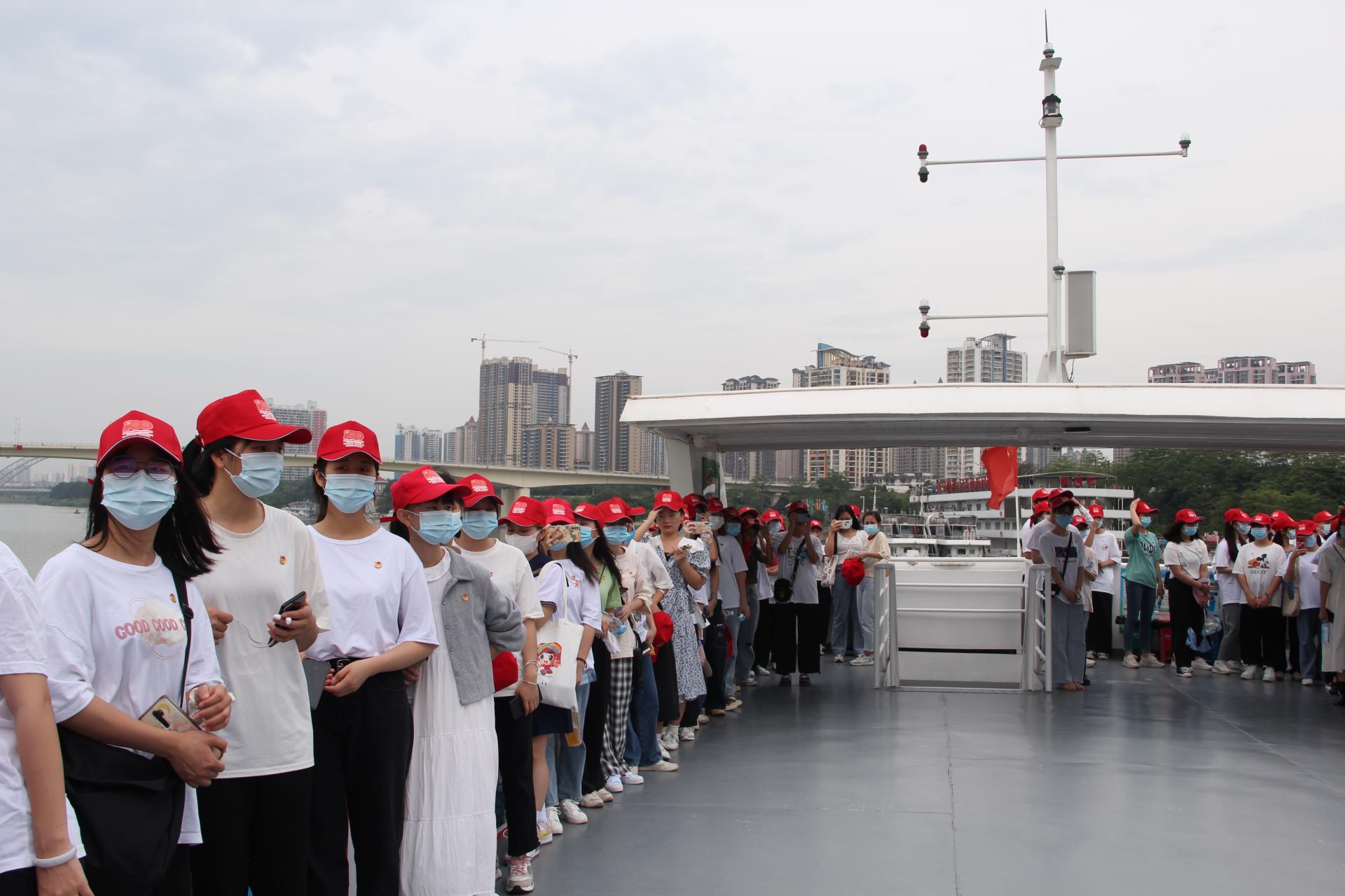 历时2.5小时的游船活动中,同学们详细了解冬泳亭、洋关码头、雷经天故居、邓颖超纪念馆、南宁兵变馆、邕江防洪堤等南宁红色历史景点背后的故事;参观游船上展出的“南宁红色历史图片展”,缅怀邓颖超、李明瑞、雷经天等老一辈无产阶级革命家的丰功伟绩;观看邕江综合整治专题片,领会南宁市委市政府“治水、建城、为民”的执政理念;积极踊跃的参加“党史知识大家答”“红色歌曲大家唱”以及“红色经典影视剧配音”等党史学习教育主题活动,在竞赛中、在歌曲中、在影视剧中回顾百年来党的光辉历程,展望中华民族伟大复兴。