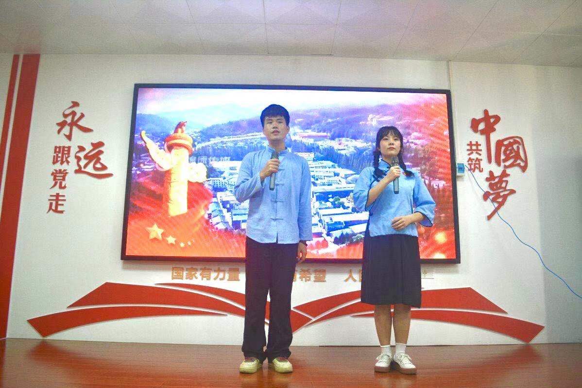 首先由两名同学共同朗诵《水调歌头·重上井冈山》,随后韦玲笑同学独自朗诵了《金色的鱼钩》。
