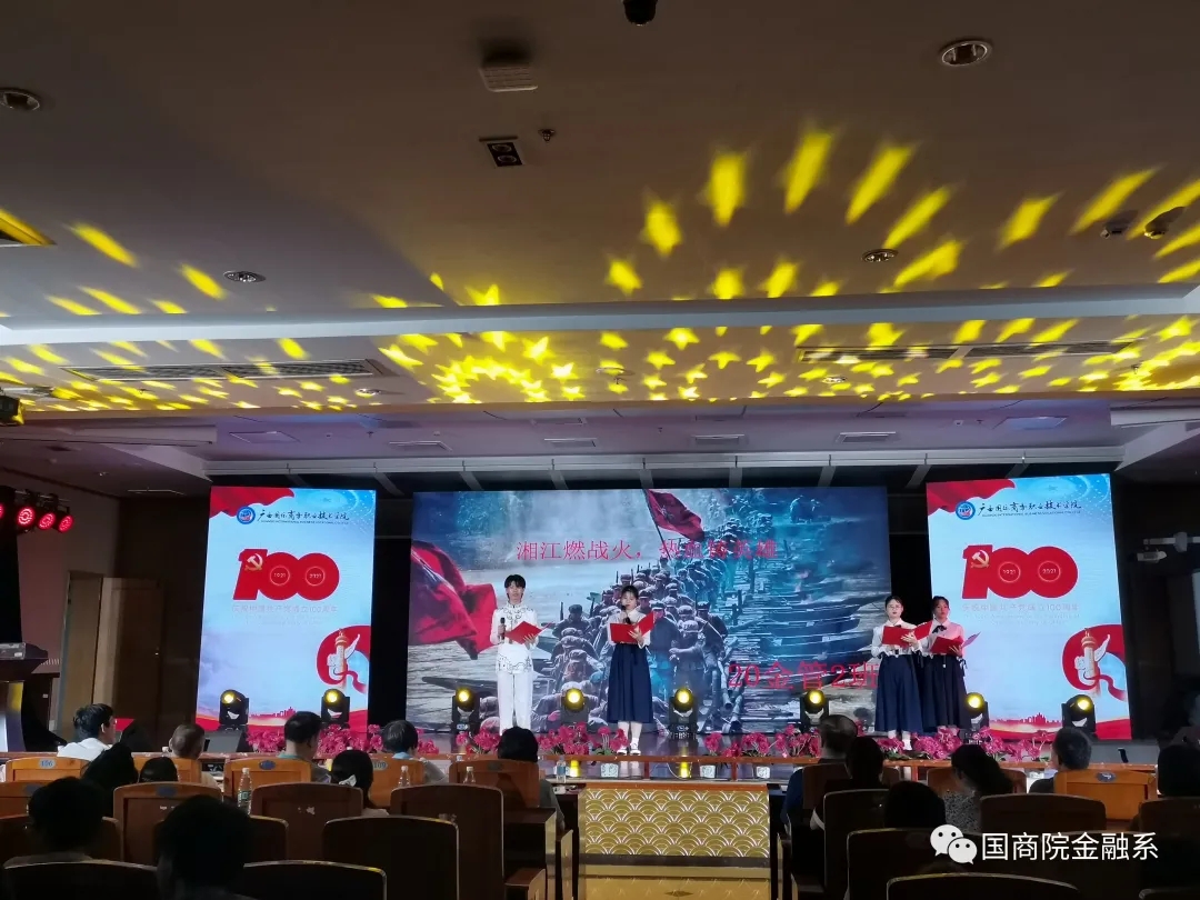 为大力发扬红色传统、传承红色基因,引导广大学生树牢唯物史观,传承红色基因,砥砺政治品格,5月28日晚,学院宣传部在图书馆十一楼报告厅举行主题为“感恩党,跟党走”红色故事大赛。金融系有4支学生队伍参加了本次比赛,其中2020级金管1班韦颖霞等10名同学和2020级金管2班卓兰荣等8名同学组成的2支队伍成功进入总决赛,参赛的两个队伍共四个节目——《革命与理想》《革命战士朱立文》和《可爱的中国》《湘江燃战火,热血筑忠魂》同时获得三等奖。