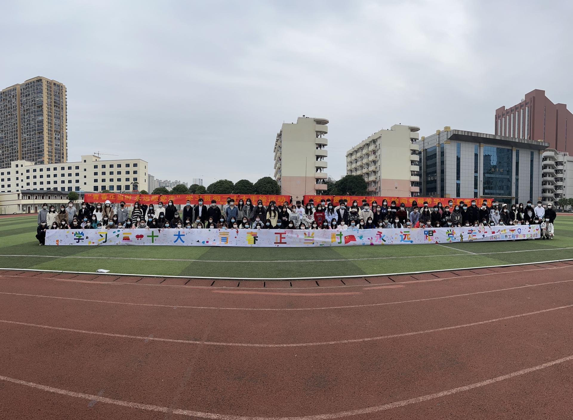 为了深入学习宣传贯彻党的二十大精神,提高入党积极分子和入党申请人的人文素养和审美能力,智能与信息工程学院学生支部于12月9日在田径场开展“学习贯彻二十大 手绘画卷展芳华”主题党日活动。支部全体党员、入党积极分子和入党申请人参加活动。