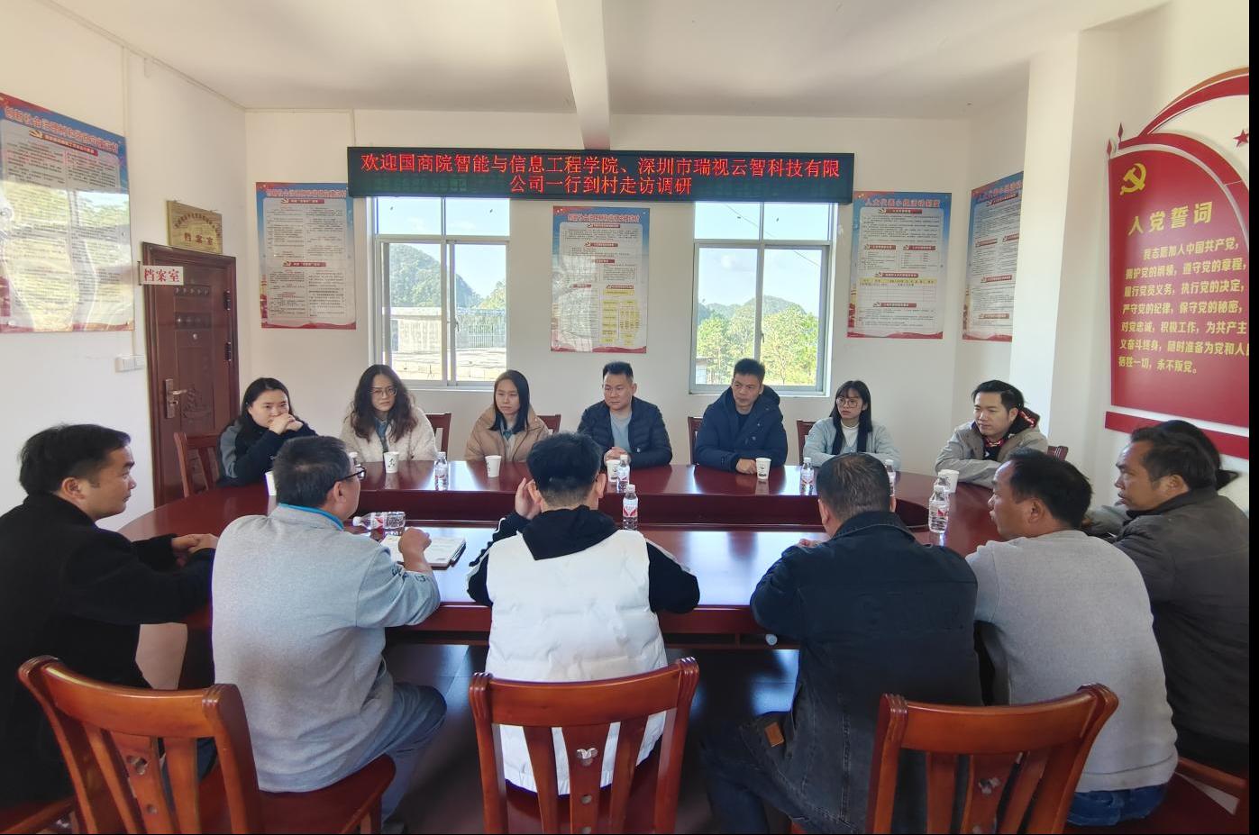 11月16日,我校智能与信息工程学院党总支副书记李冬、深圳市瑞视云智科技有限公司代表等一行7人前往河池市南丹县里湖瑶族乡化果村,开展“党建引领显担当 乡村振兴谱新篇 校企合作再深化”乡村振兴实践教育活动,走访慰问驻村第一书记邹源忠,并向驻村工作队员、村委干部及留守儿童“送温暖”。