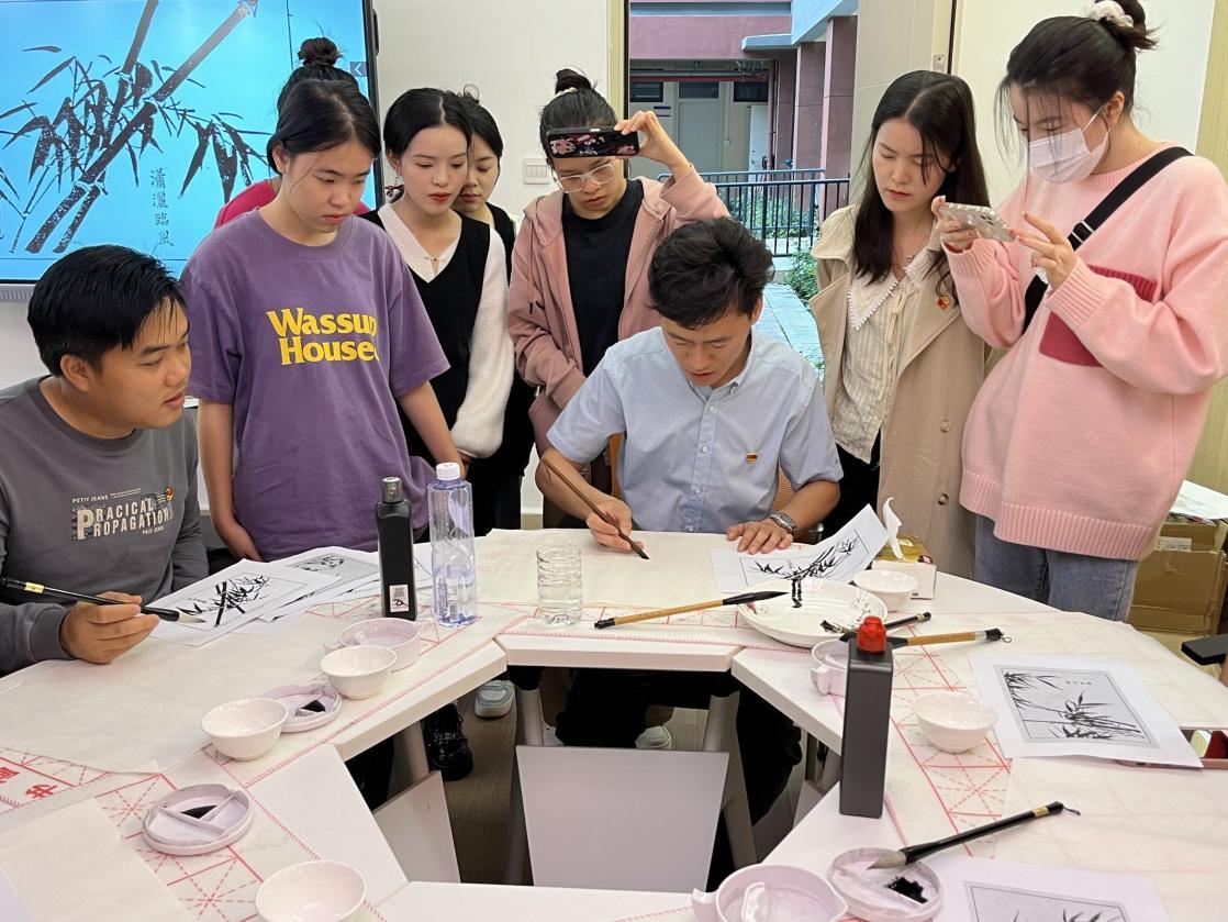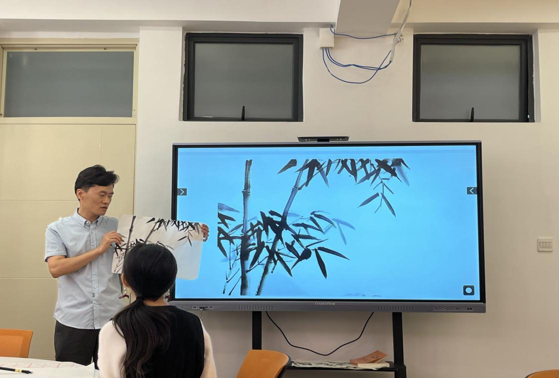 在充分讲解后,师生们一起参与到国画绘画中描绘墨竹,感受国画的用笔和墨色的干湿浓淡变化,感受国画的乐趣。