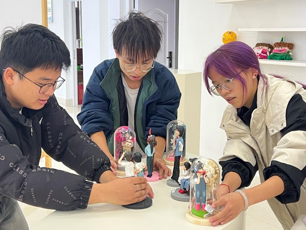 实践体验活动环节中,全体人员共同参与布置“桂融优品”广西助残就业产品展示厅。大家首先听取了廖源基于“AI技术+社会技术服务”设计的展厅布置方案介绍,随后“小红贸”志愿服务队的成员们在吴薇指导下动手实践,细致分类、有序陈列手工艺品与农产品,优化展区布局,有效提升展示效果。