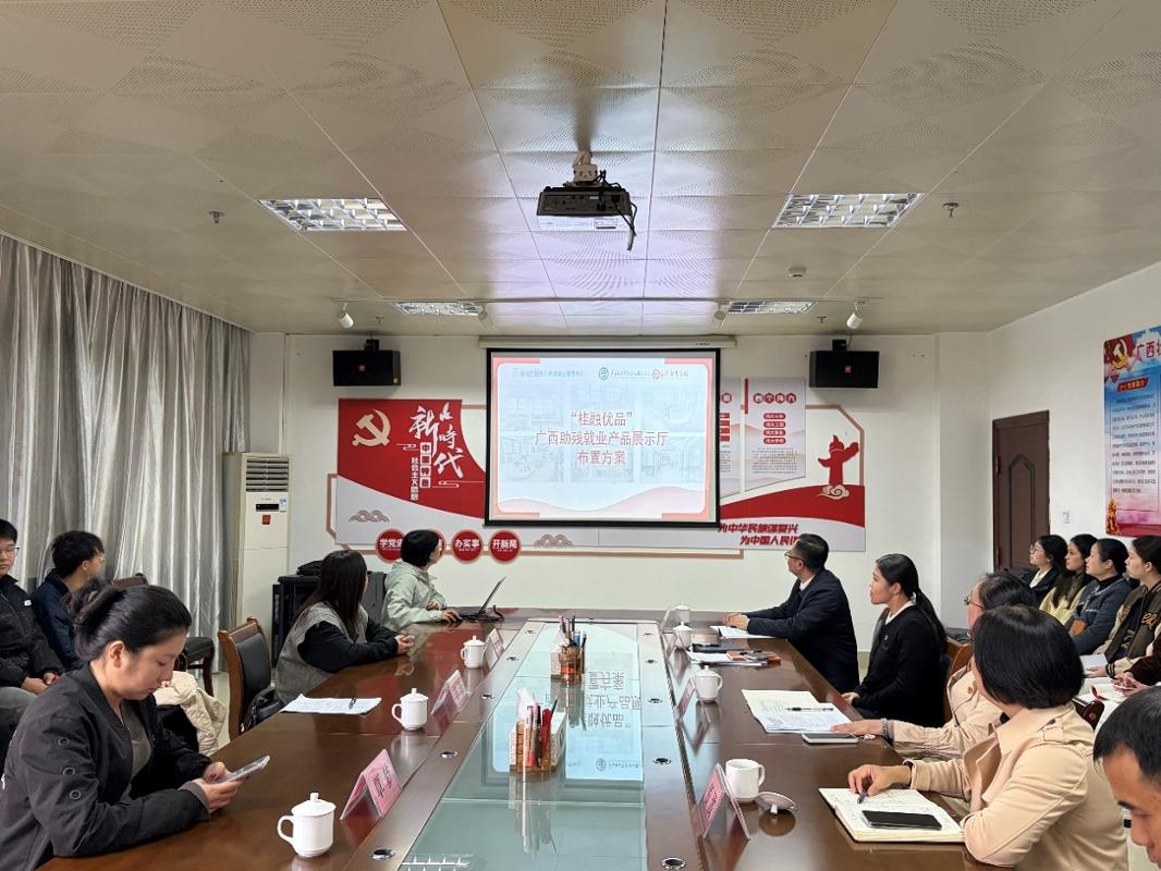 为深化职业教育与助残就业工作融合,推动党建与业务协同发展,11月4日下午,国际贸易学院教工党支部与自治区残疾人劳动就业指导中心党支部在广西残疾人事业园联合开展“职教融合促交流,助残就业共携手”联建共建活动。自治区残疾人联合会教育就业部负责人韦敬、自治区残疾人劳动就业指导中心主任兼党支部书记韦波、国际贸易学院教工党支部纪检委员廖源、学生党支部“小红贸”志愿服务队及学院党建协同育人单位广西瑞宝麒教育科技有限公司副总经理吴薇共20余人参加活动。