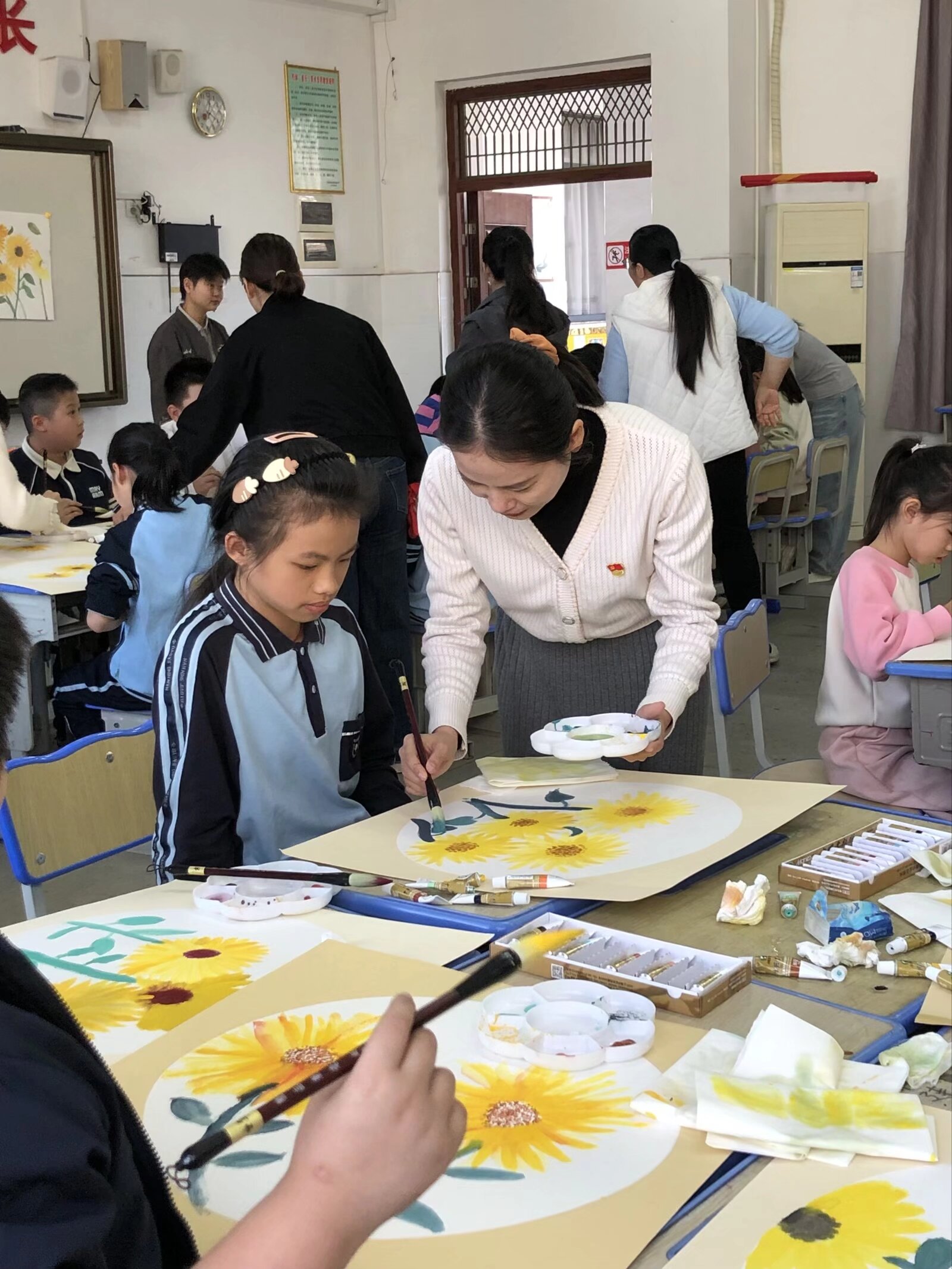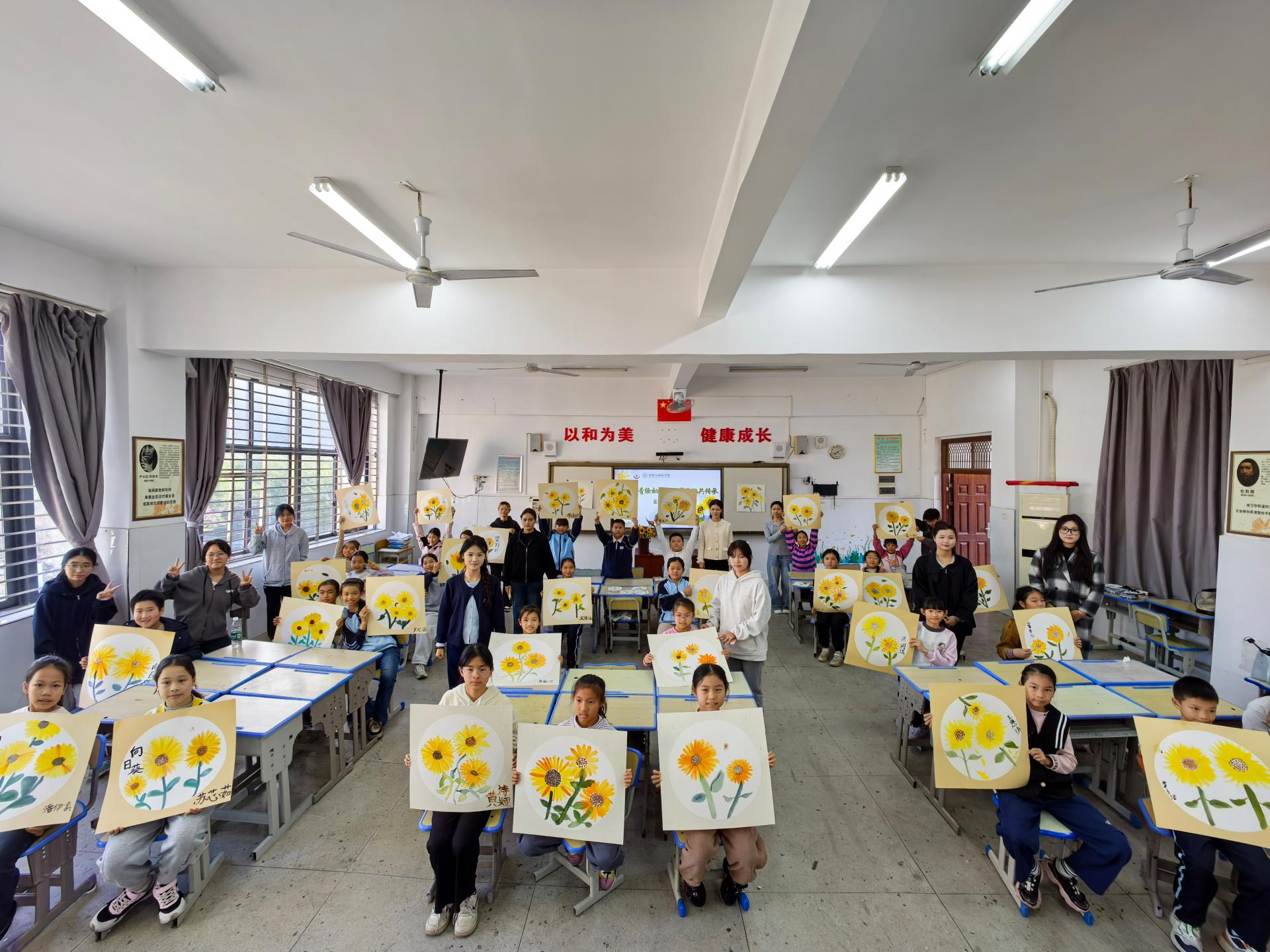 为弘扬中华优秀传统文化,厚植青少年文化自信,同时提升文化与旅游学院学生实践与沟通能力,11月21日下午,文化与旅游学院学生党支部以艺术美育为纽带,搭建“大手牵小手”共学共创的文化交流平台,携手东盟经济开发区致和路小学开展以“向阳而生”为主题的国画体验活动,活动旨在以美育促进代际对话与社群融合,党支部5名党员教师及20名休闲服务与管理、旅游管理专业学生共同参与本次活动。