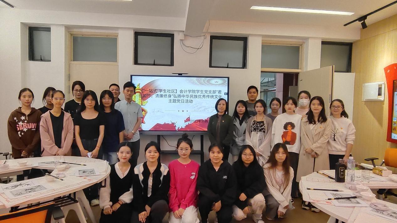 11月30日,我校会计学院学生党支部在东盟校区16栋“一站式”学生社区108党团活动室举行“君当如竹 清廉...