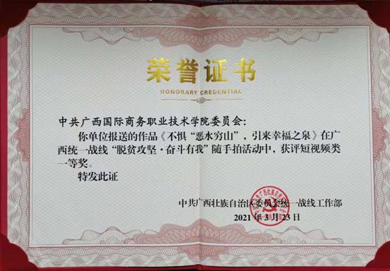 日前,中共广西壮族自治区委员会统一战线工作部为我院发来荣誉证书。我院报送的作品《不惧“恶水穷山”...