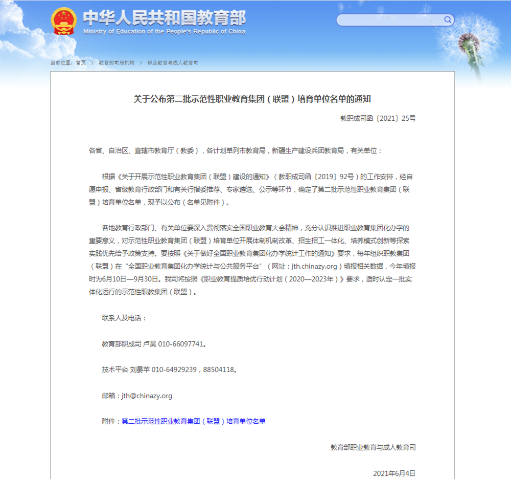 近日,教育部公布了第二批示范性职业教育集团(联盟)培育单位名单。根据《关于开展示范性职业教育集团...
