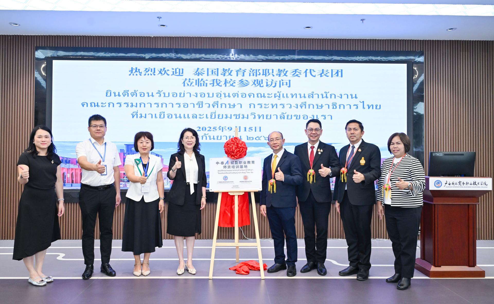 9月15日下午,泰国教育部职业教育委员会副秘书长素拉鹏・厄姆乌泰与春武里职业学院校长皮隆・维里亚普拉...