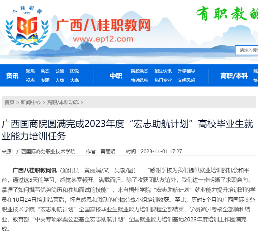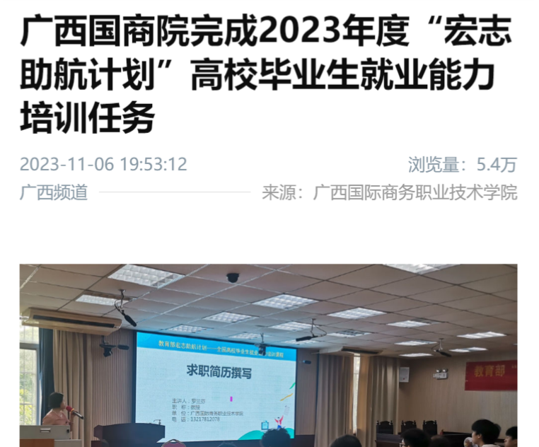 新华社、光明日报报道我校2023年“宏志助航、留桂就业”校园双选会:新华社链接:https://m.sohu.com/a/...